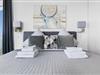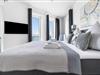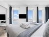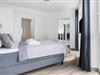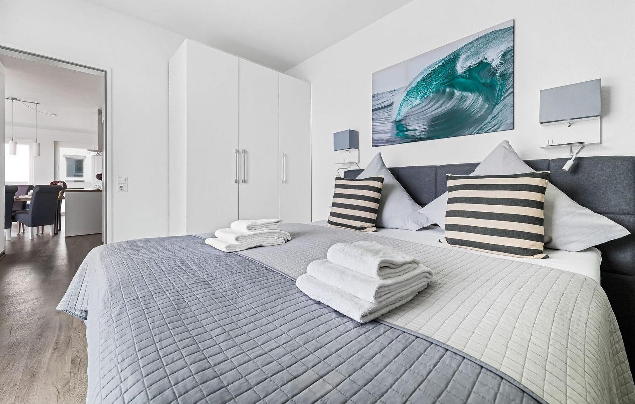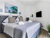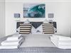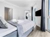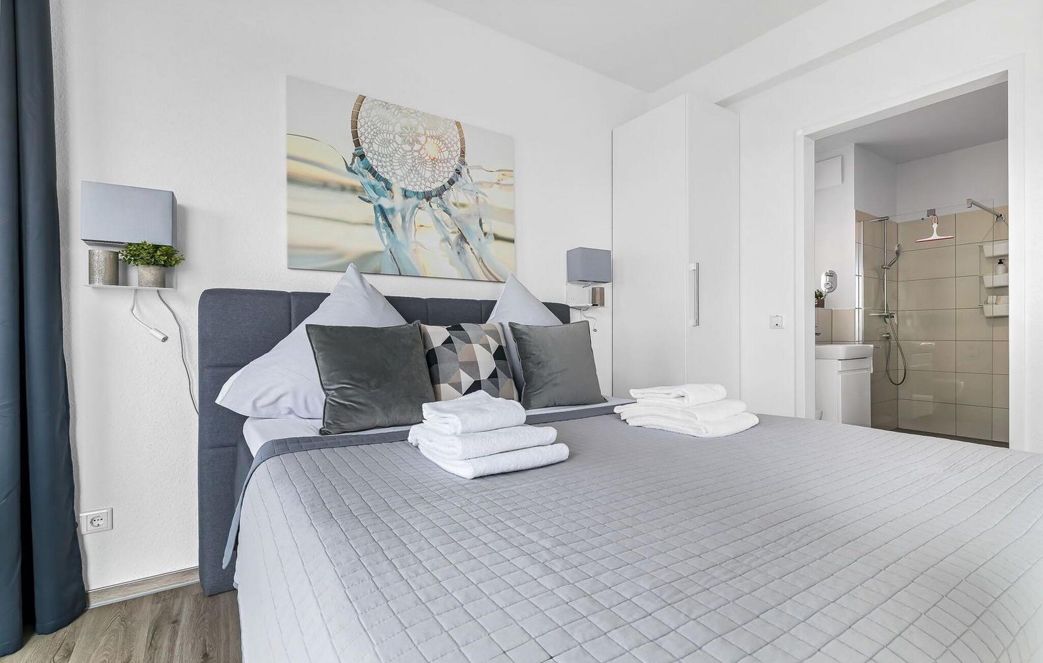 De to soveværelser er udstyret med hver en dobbeltseng og et Smart-TV, hvoraf det ene soveværelse desuden har et badeværelse en suite med en brusekabine i gulvhøjde.