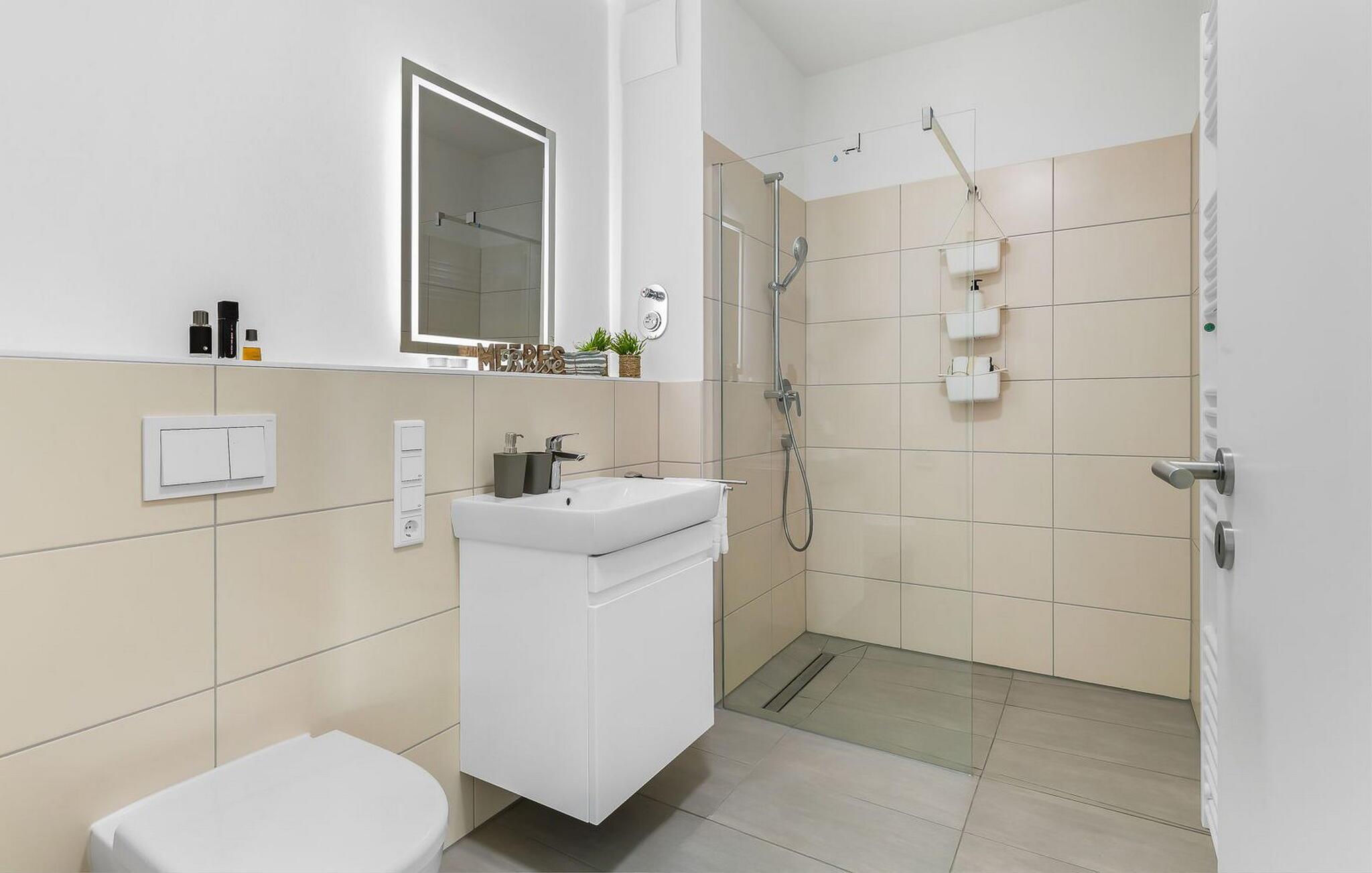 Foran bygningen venter der jer en privat parkeringsplads. I har også adgang til et fælles vaskerum med vaskemaskine og tørretumbler. I perioden 01.04.-31.10. har I jeres egen gratis strandstol til rådighed i den lille badebugt på OstseeResort.