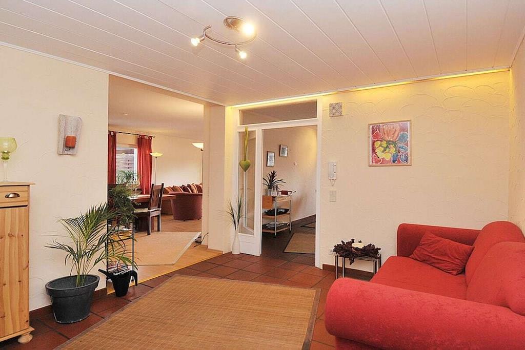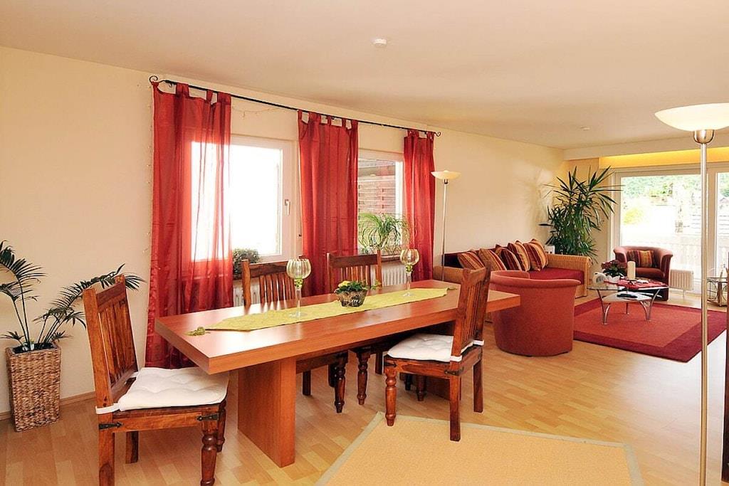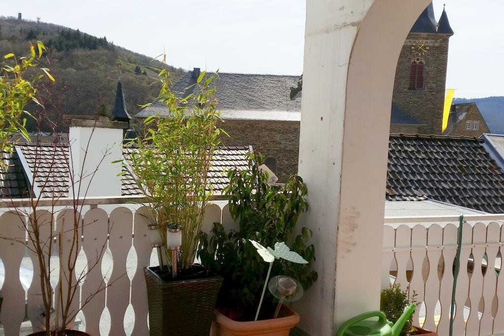 Www.naekel-dernau.de Ferielejligheden ligger ved starten af Rødvinsruten og tilbyder en betagende udsigt over de omkringliggende vinmarker. Slap af og nyd komforten efter en vandretur i vores nyrenoverede lejlighed og et besøg på restauranten Hofgarten, hvor du kan nyde fremragende vine og regionale retter i smukke omgivelser. Den moderne lejlighed på 130 kvm har to separate soveværelser, et sammenhængende værelse med to enkeltsenge, en kombineret stue og soveområde, et stort badeværelse med hjørnebadekar, et ekstra gæstetoilet, et fuldt udstyret køkken, en rummelig stue med satellit-tv og dvd-afspiller samt en 50 kvm balkon med en fantastisk panoramaudsigt over Dernau.