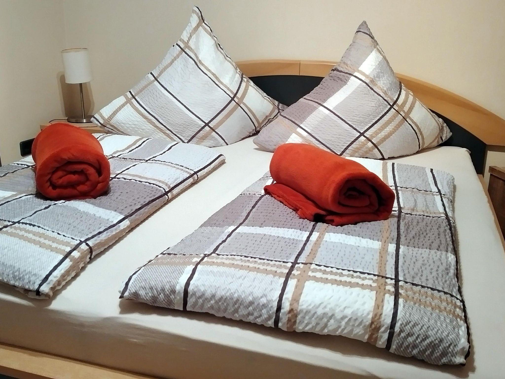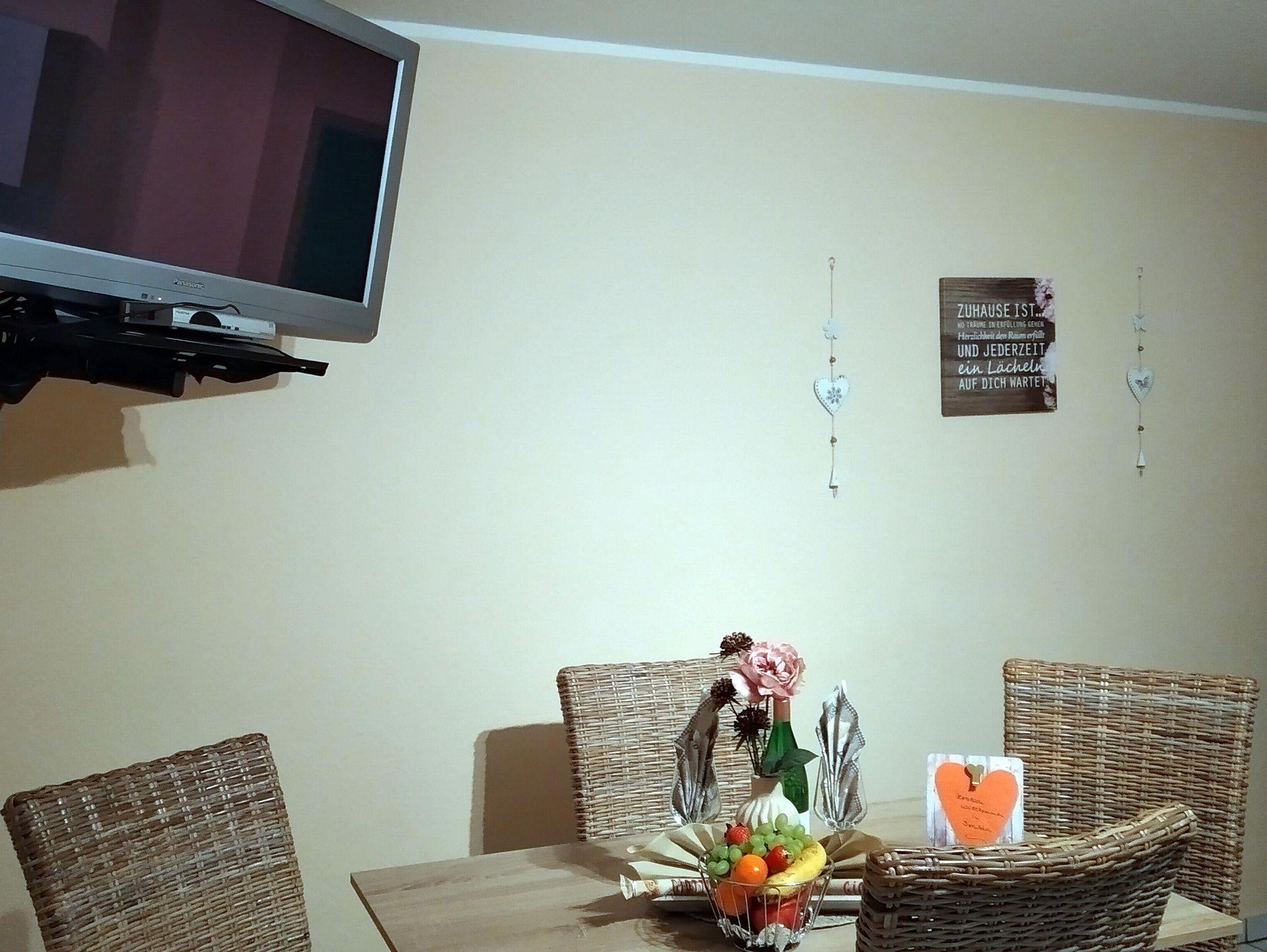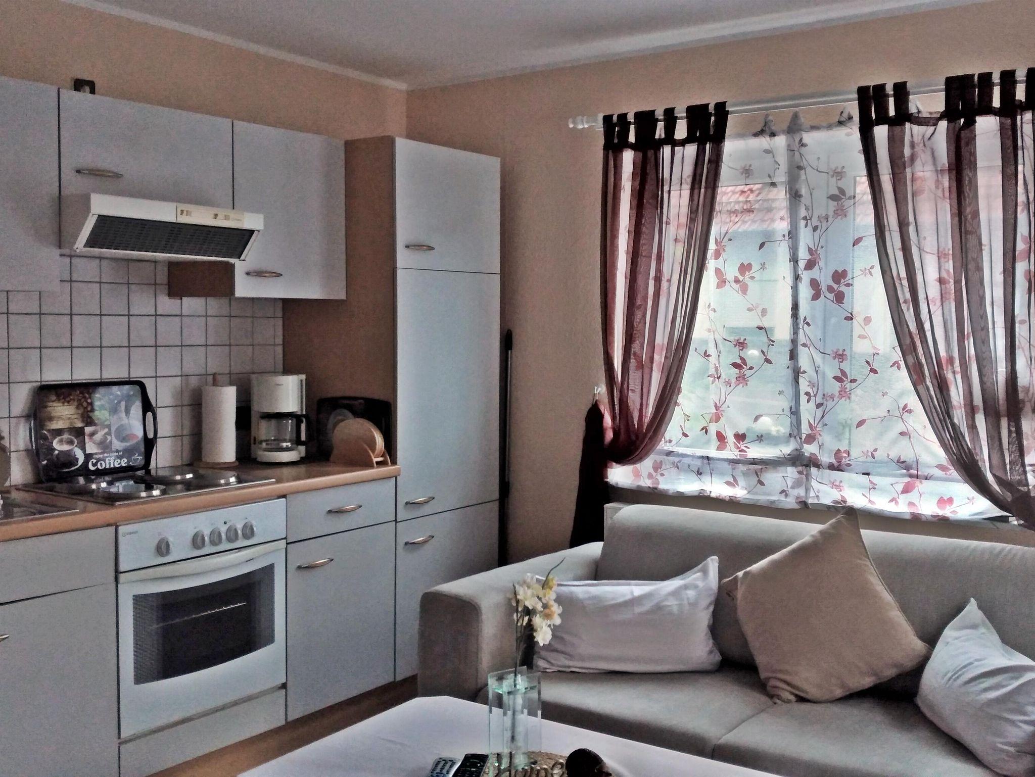 Unsere Ferienwohnung besteht aus einer großen Wohnküche mit Sofabett. (Schlafgelegenheit für 2 Personen)., einem sep. Schlafzimmer, Bad und Flur.