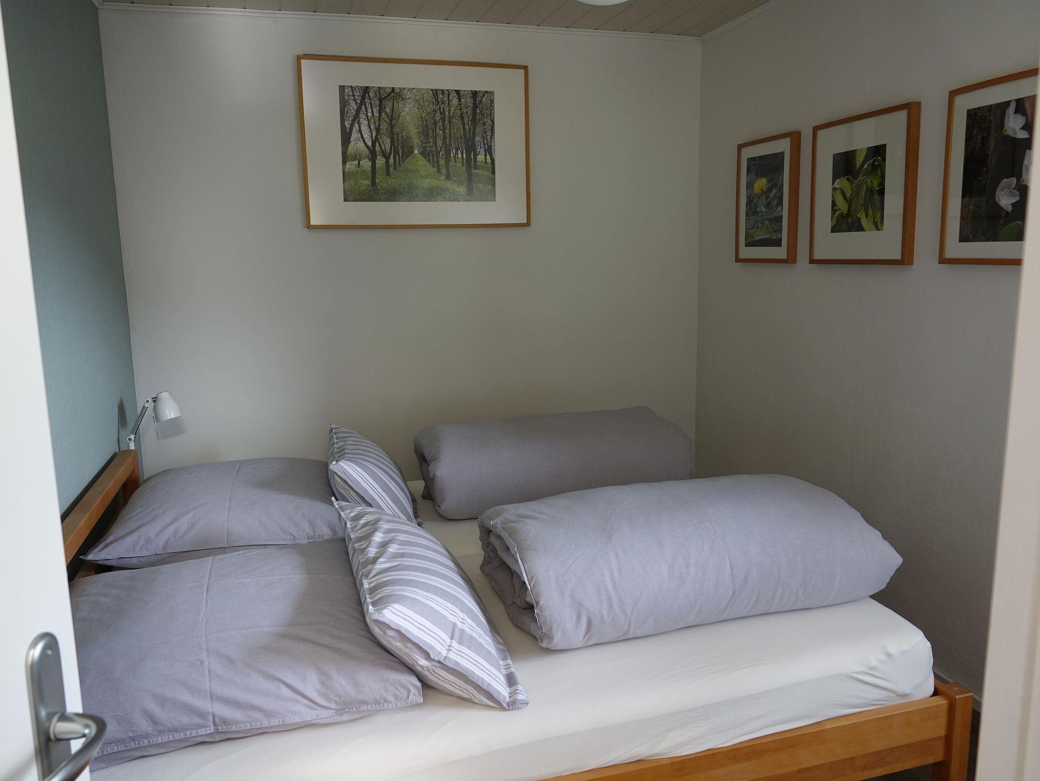 Die Ferienwohnung Vis-à-Vis bietet Platz für 6 Personen. Sie befindet sich vis à vis vom Haus am Lindenbaum genau auf der gegenüberliegenden Talseite im Erdgeschoß unseres Wohnhauses. Die Wohnung wurde komplett neu renoviert und verfügt über 3 Schlafzimmer (1 Doppelbett 180 x 200 cm, 1 Doppelbett 180 x 200 cm, 2 Einzelbetten 100 x 200 cm) ein Wohnzimmer mit Kaminofen, ein Badezimmer und eine Küche. Die Wohnung hat eine großzügige Terrasse mit Blick aufs Dorf und die Berge.