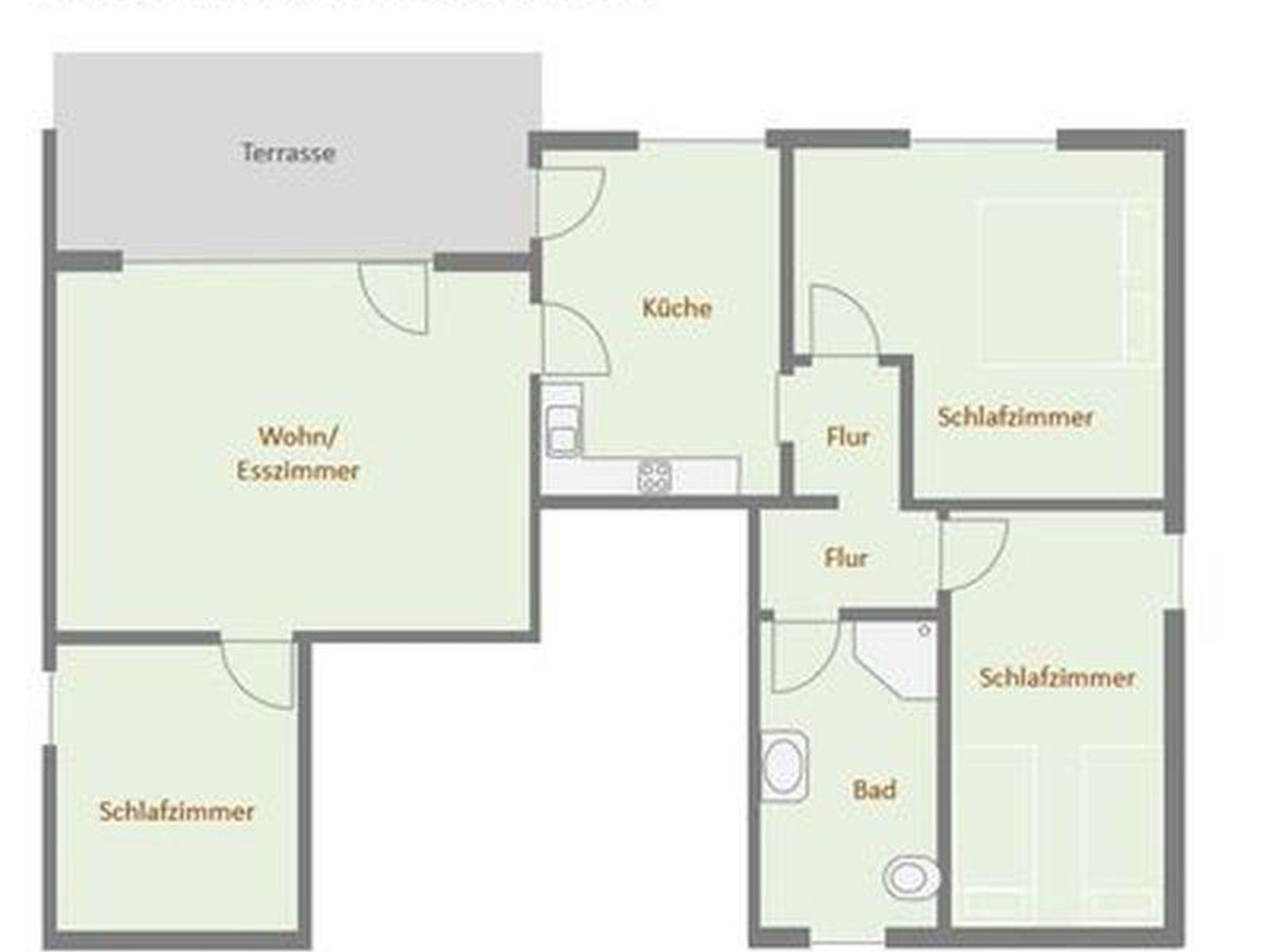 Ferienwohnung mit 3 Schlafzimmern für 6 Personen; Küche; Bad; Wohnzimmer; Terrasse; Gartennutzung möglich