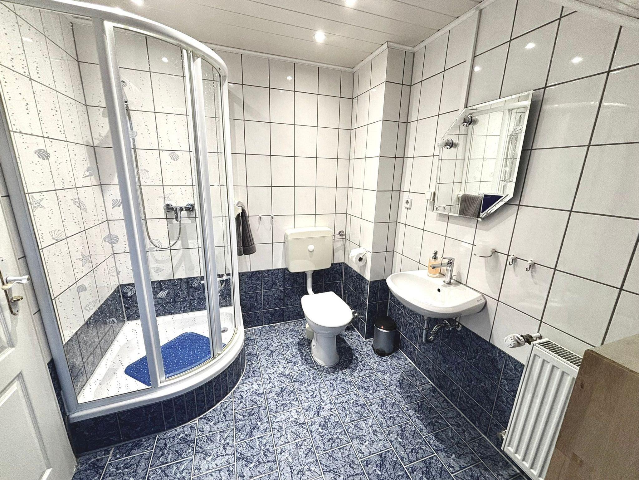 Das Obergeschoss ist 39 m² groß. Die im Flur befindliche Infrarotsauna, kann für einen kleinen Aufpreis benutzt werden. Das Schlafzimmer beinhaltet ein Doppelbett und ein Einzelbett, sowie eine kleine Sitzecke. Im großen Badezimmer befindet sich eine Badewanne und eine Dusche.