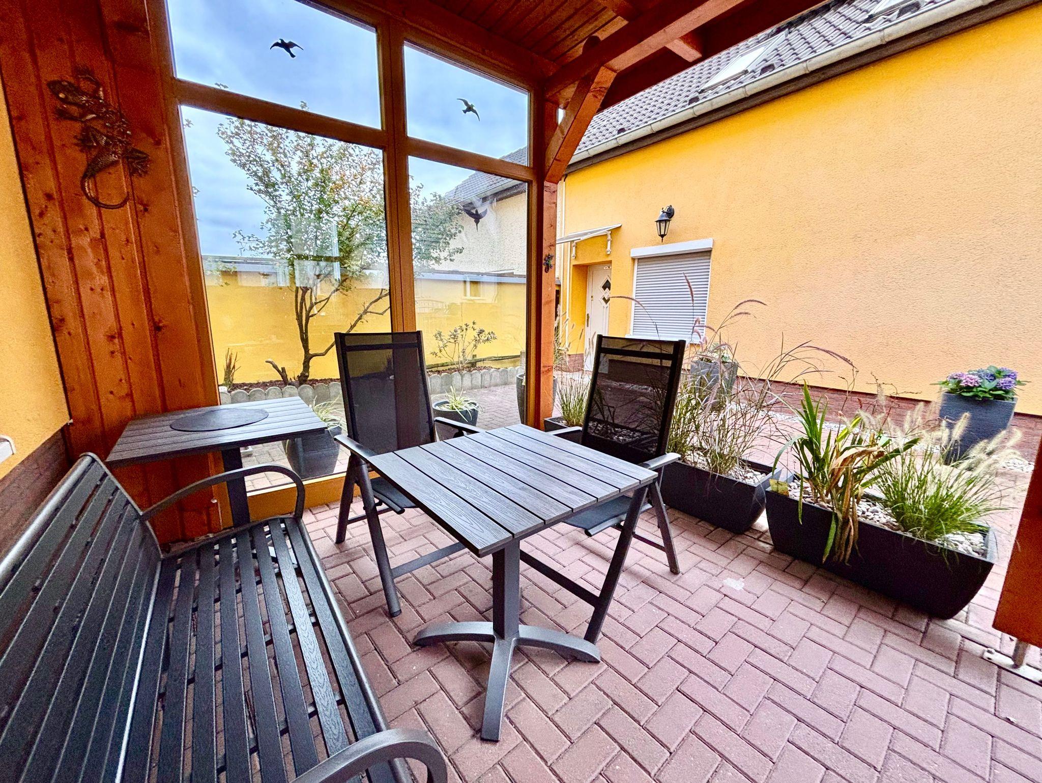 Die Außenanlage ist gepflegt und bietet mit überdachter Terrasse, privatem Garten mit Blumenbeeten und einem Innenhof viele Möglichkeiten zum Verweilen im Freien. Fahrräder können sicher im abschließbaren Innenhof untergestellt werden.