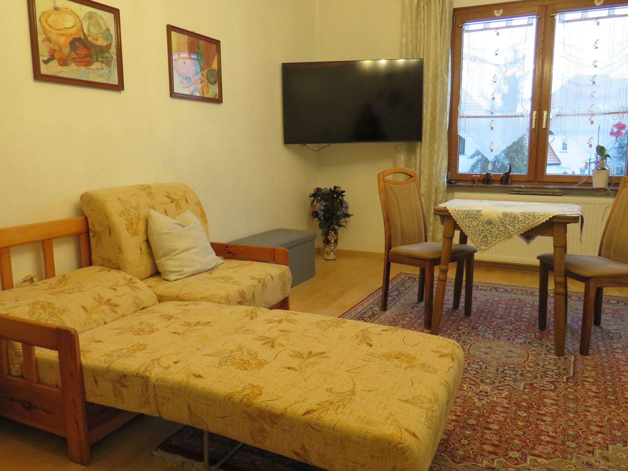 Unsere Gäste haben ein ca. 22 qm großes Zimmer mit Doppelschlafcouch, einem großen Einzelbett und eine kleine gut ausgestattete Küchenzeile zur Verfügung.