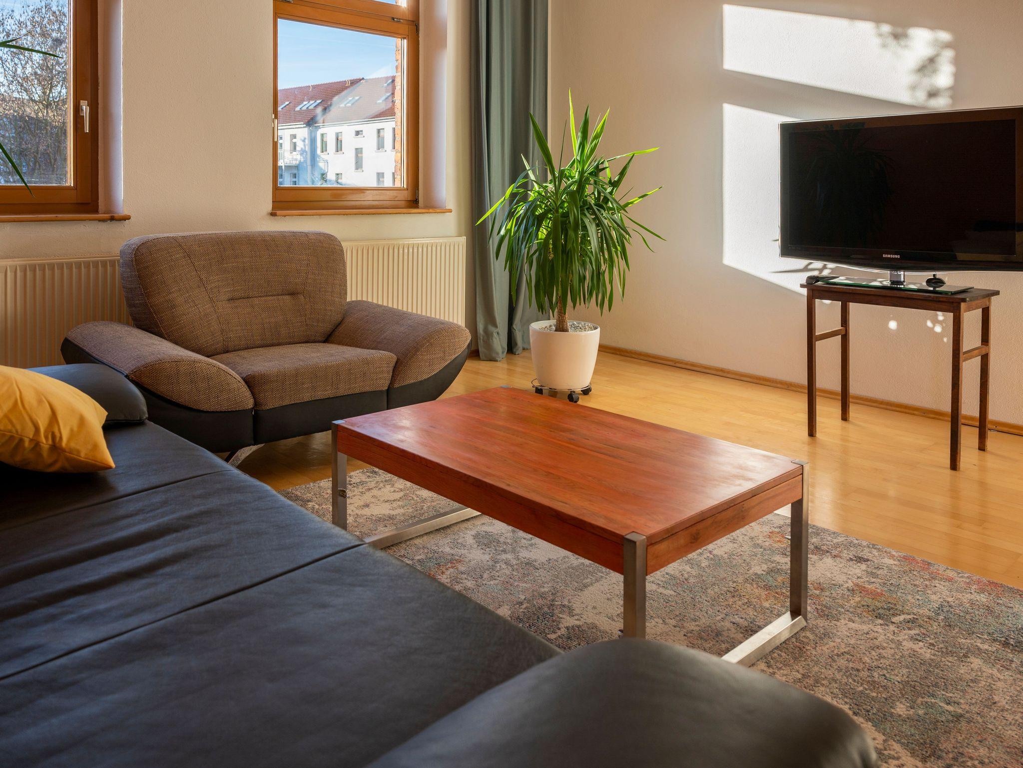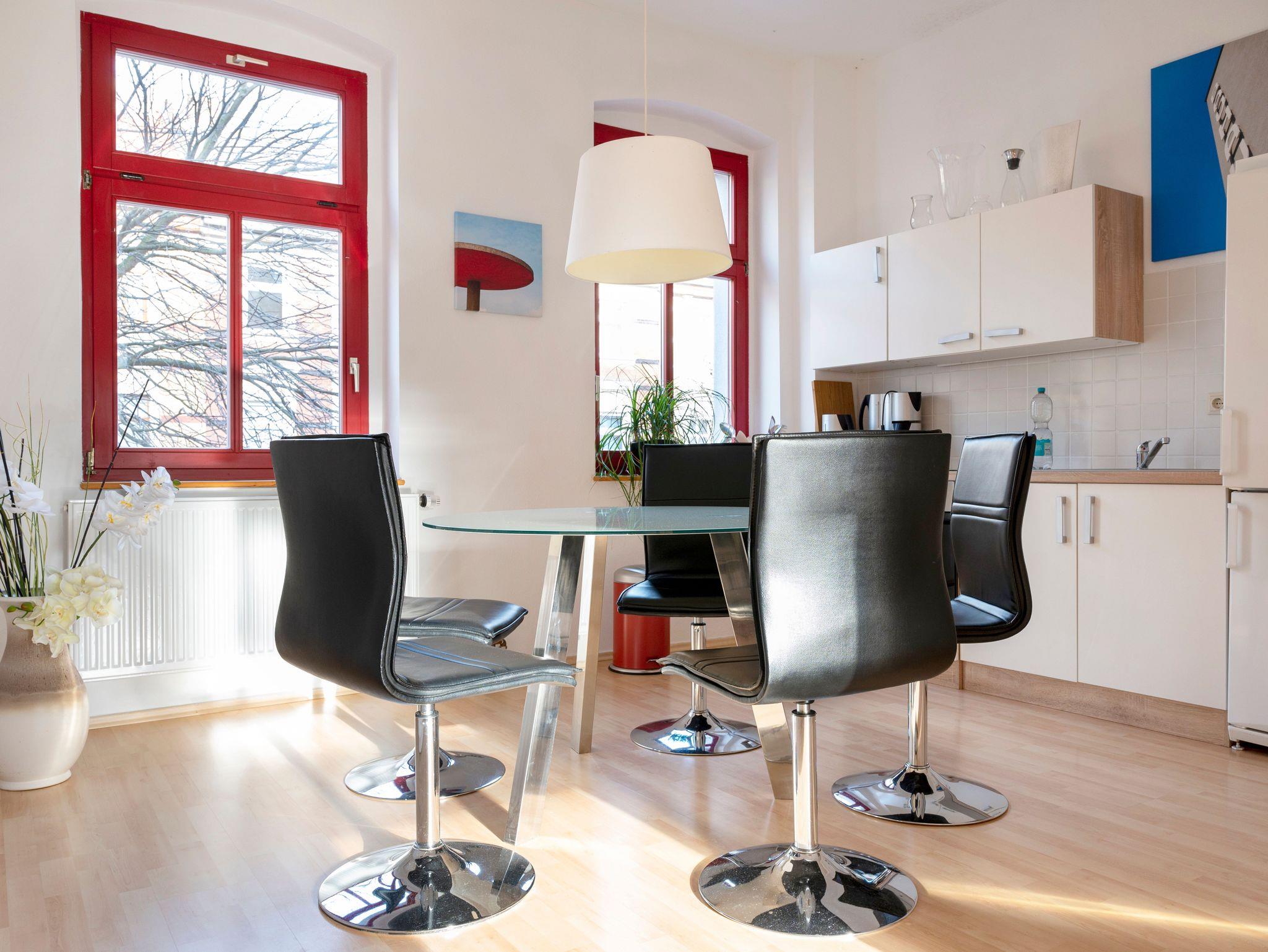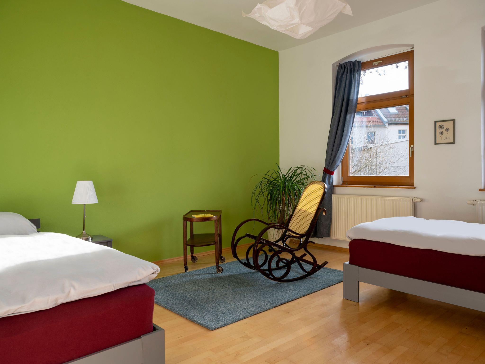 Die geräumige Ferienwohnung im Gründerzeitviertel hat kurze Wege zu allen Sehenswürdigkeiten der Stadt. Im direkten Umfeld sind zahlreiche Versorgungseinrichtungen bis hin zum Bio-Laden zu finden. Die Gastgeber bieten auf Wunsch eine umfassende touritische Beratung (Gästeführer).