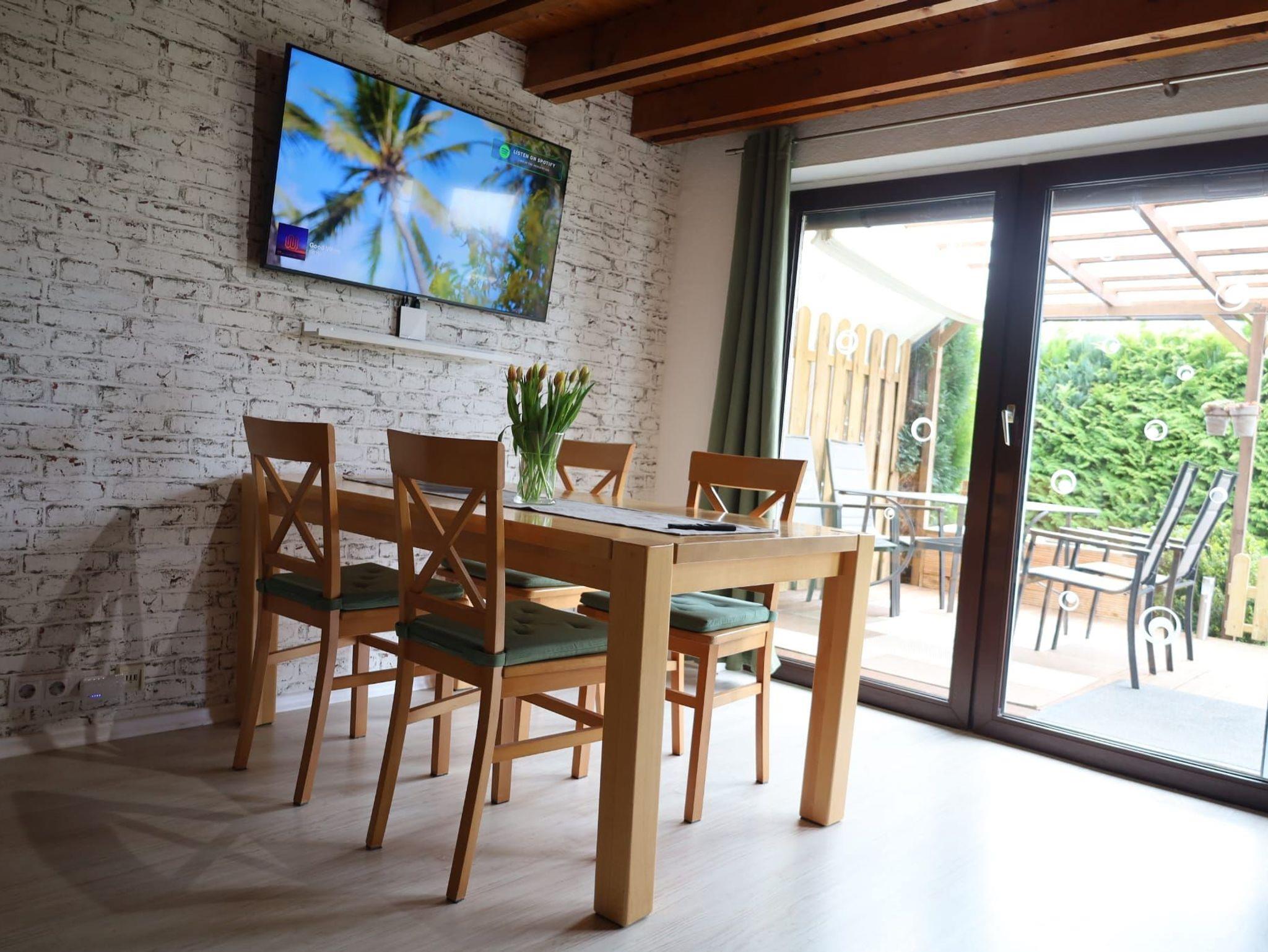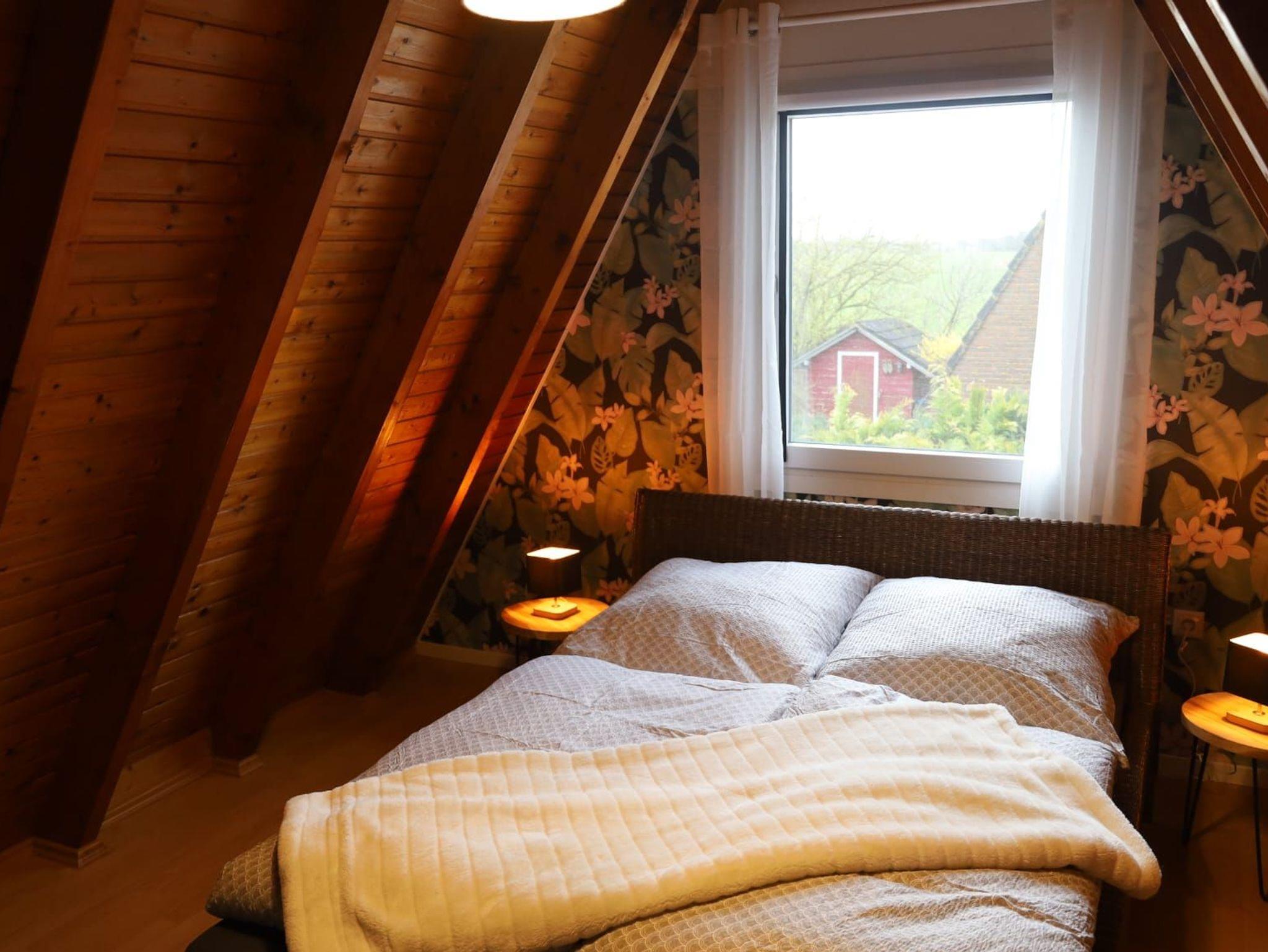 Das Haus verfügt über Platz für 4 Personen. Im Erdgeschoss befindet sich ein Tageslichtbad, eine voll ausgestattete Küche sowie ein heller freundlicher Wohn- und Essbereich mit Zugang zur Terrasse. Im Obergeschoss befindet sich ein gemütliches Schlafzimmer mit Doppelbett (1,40 m x 2,0 m), ein liebevoll eingerichtetes (Kinder-) Zimmer mit zwei Einzelbetten (0,90 m x 2,0 m) und ein WC.