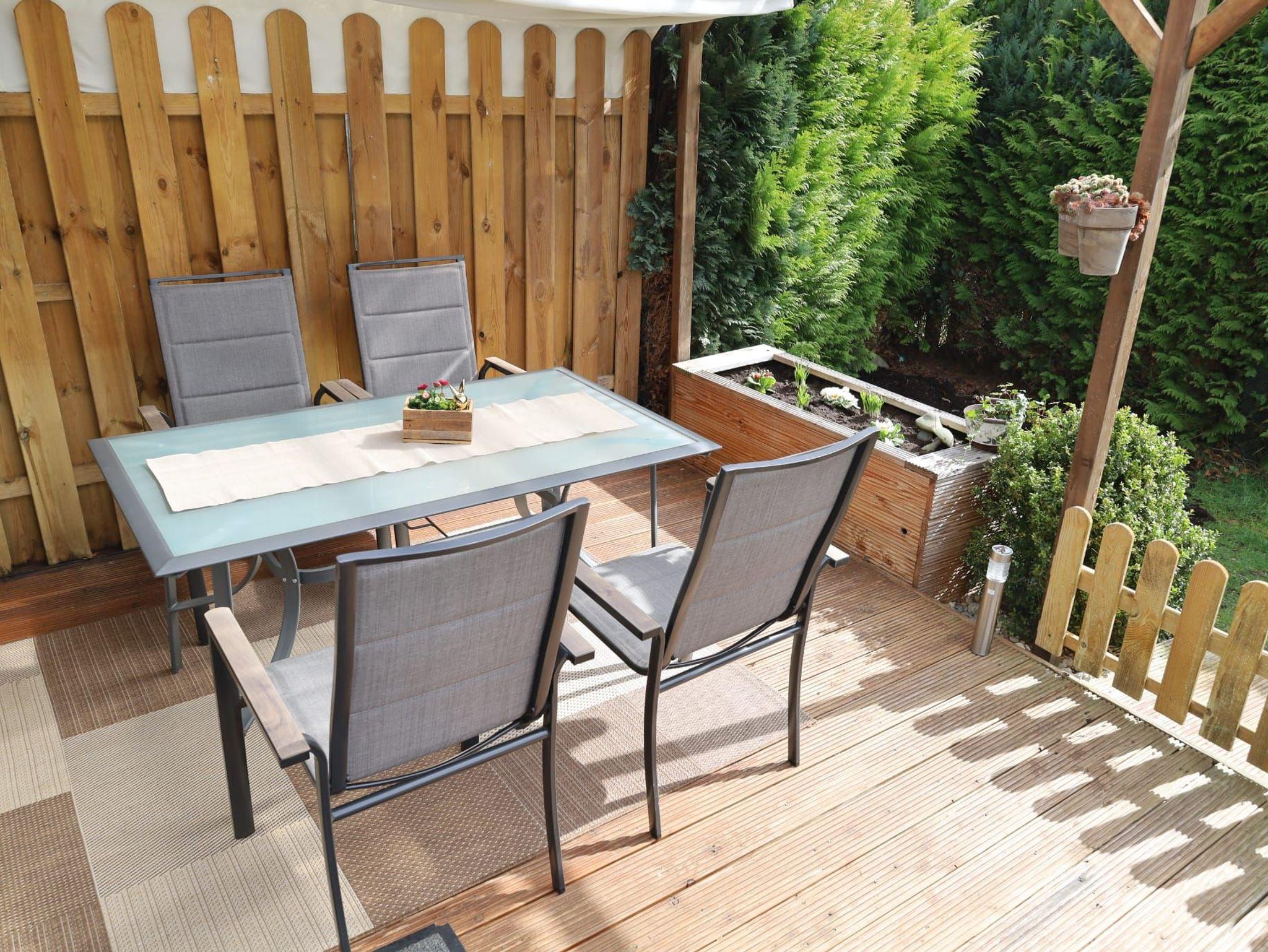 Auf der überdachten Terrasse kann man herrlich entspannen und die Sommerabende genießen. Außer den Gartenmöbeln steht Ihnen ein Grill zur Verfügung.