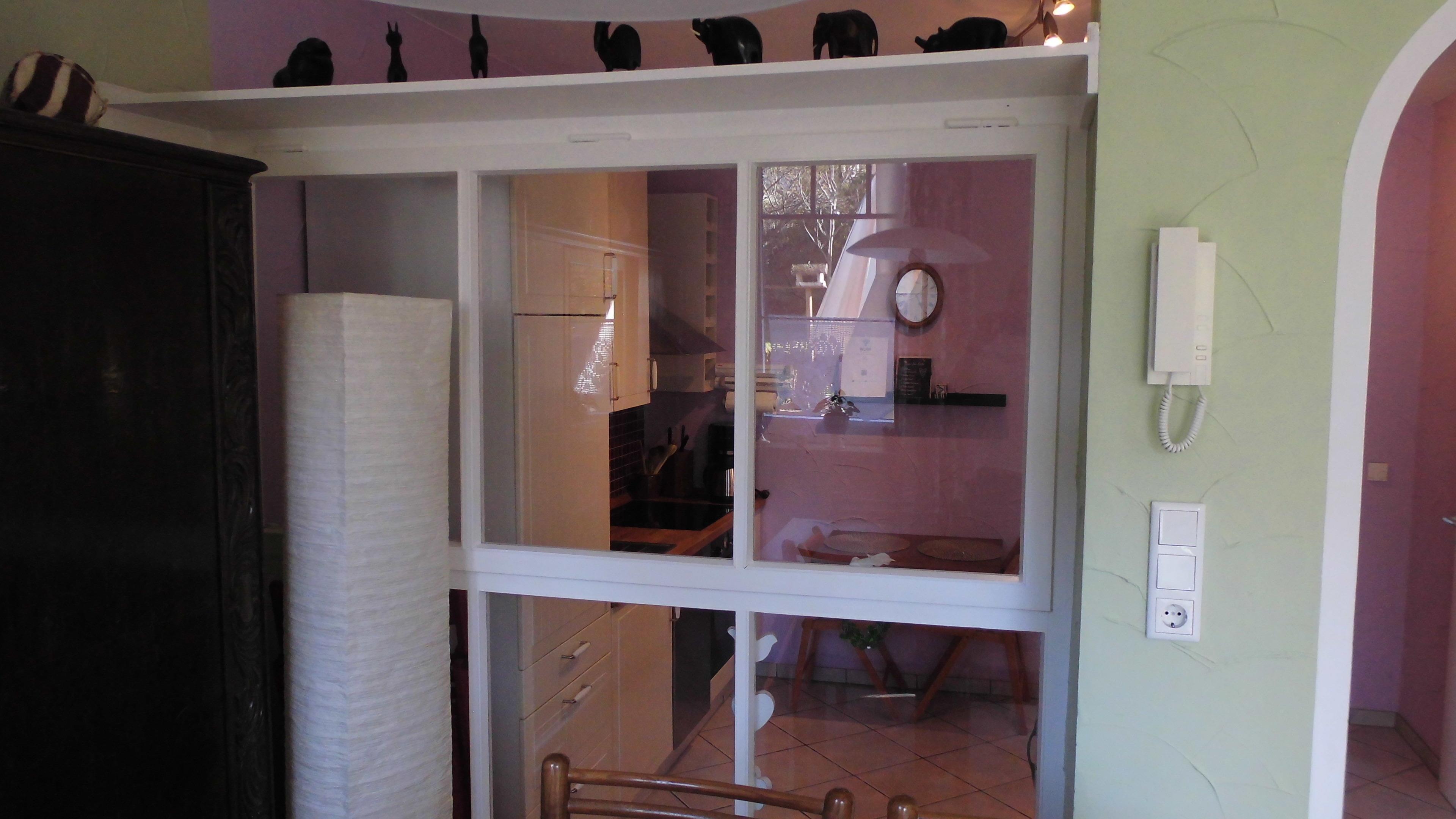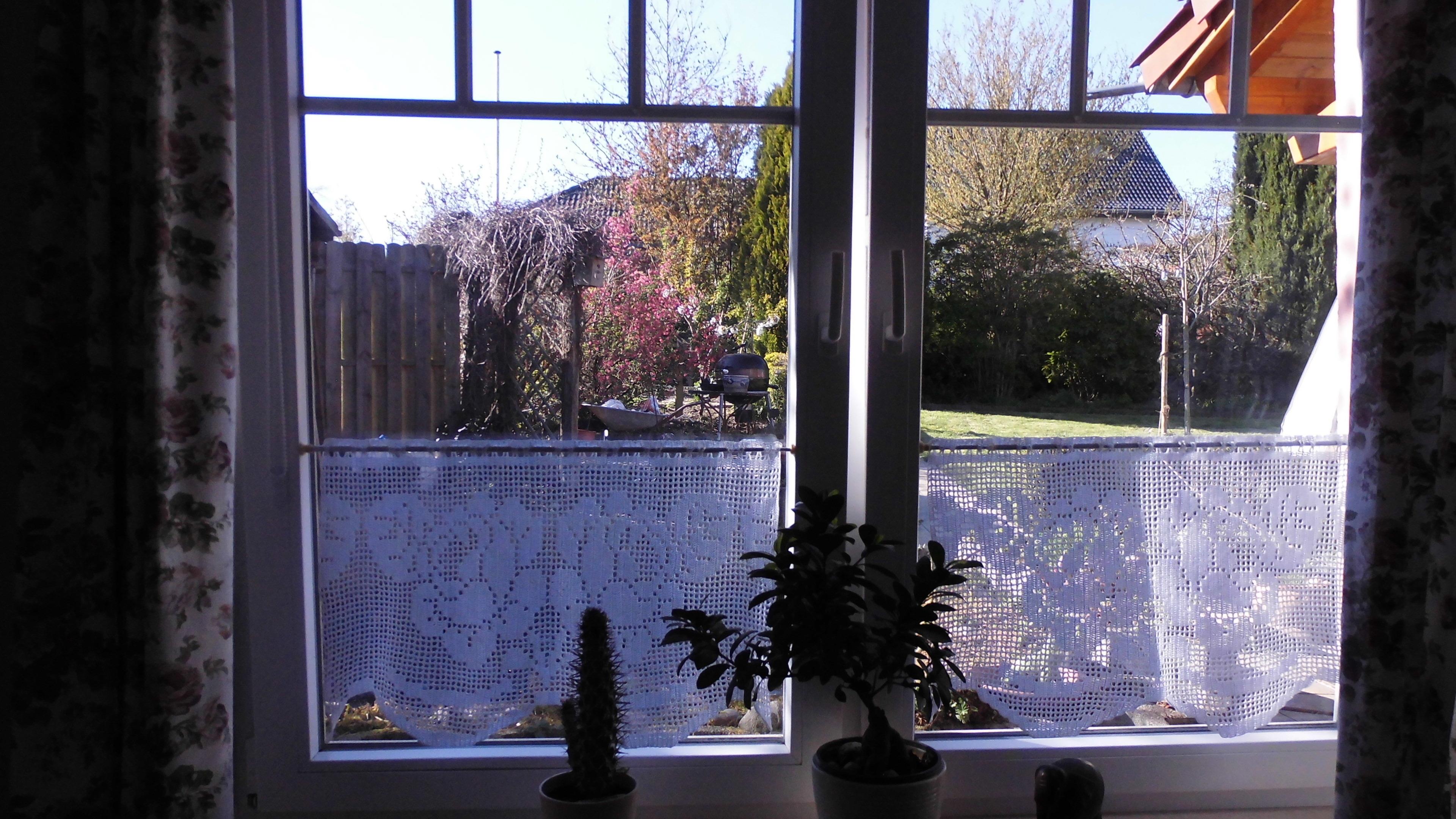 Marie's Apartment ist unsere kleine Ferienwohnung, ebenerdig, aber mit zwei Stufen, die bauseits unvermeidbar waren. Sie gelangen zunächst in einen kleinen Flurbereich mit einer Garderobe. Von dort aus führt eine Tür ins Badezimmer mit Waschbecken, WC und ebenerdiger Dusche. Das Bad hat ein Fenster mit nicht einsehbarem Glas. Dort befindet sich auch ein Handtuchtrockner, der bei Bedarf eingeschaltet werden kann. Durch einen Türbogen gelangen Sie vom Flur in die offene Küche. Dort ist auch ein kleiner, abklappbarer Tisch mit zwei Stühlen für das schnelle Frühstück. Die Küche hat ansonsten eine kleine Spülmaschine, einen Herd mit Ofen, eine Mikrowelle, eine Kaffeemaschine, einen Kühlschrank und einen Wasserkocher. Das Besteck und Geschirr ist für 6 Personen ausgelegt. Von dort aus führt eine Tür ins Schafzimmer mit einem großen Kleiderschrank mit Schiebetüren und einem Doppelbett in den Maßen 1,6 m mal 2,0 m. Neben dem Bett befinden sich Nachtschränkchen und Lampen. Das Schlafzimmer hat ein zweiflügeliges Fenster, welches Sie nachts oder auch tagsüber "auf Kippe" stellen können.