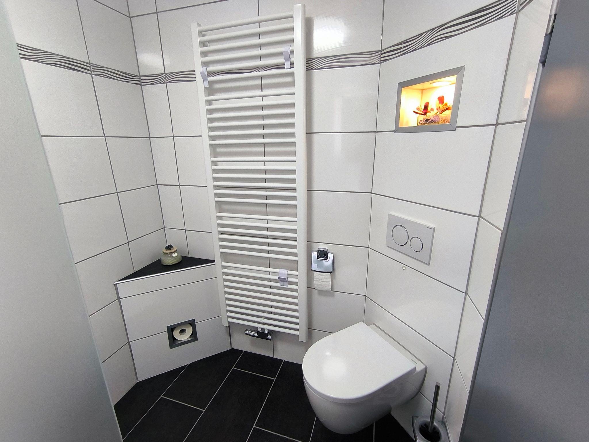 Im Wohnzimmer gibt es noch ein vollwertiges ( 90 x 2,00 m ) Schrankbett. Eine voll ausgestattete Küche, Bad mit Wanne (Duschen möglich). SAT TV, Radio u. CD-Anlage. Internetzugang ( WLAN ) vorhanden.