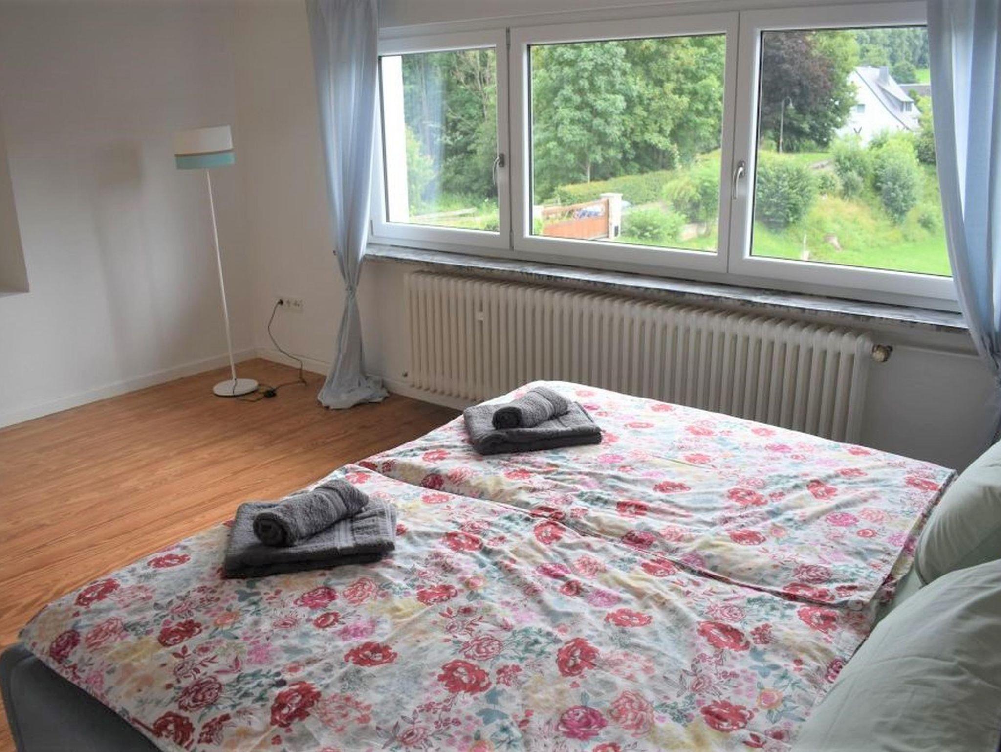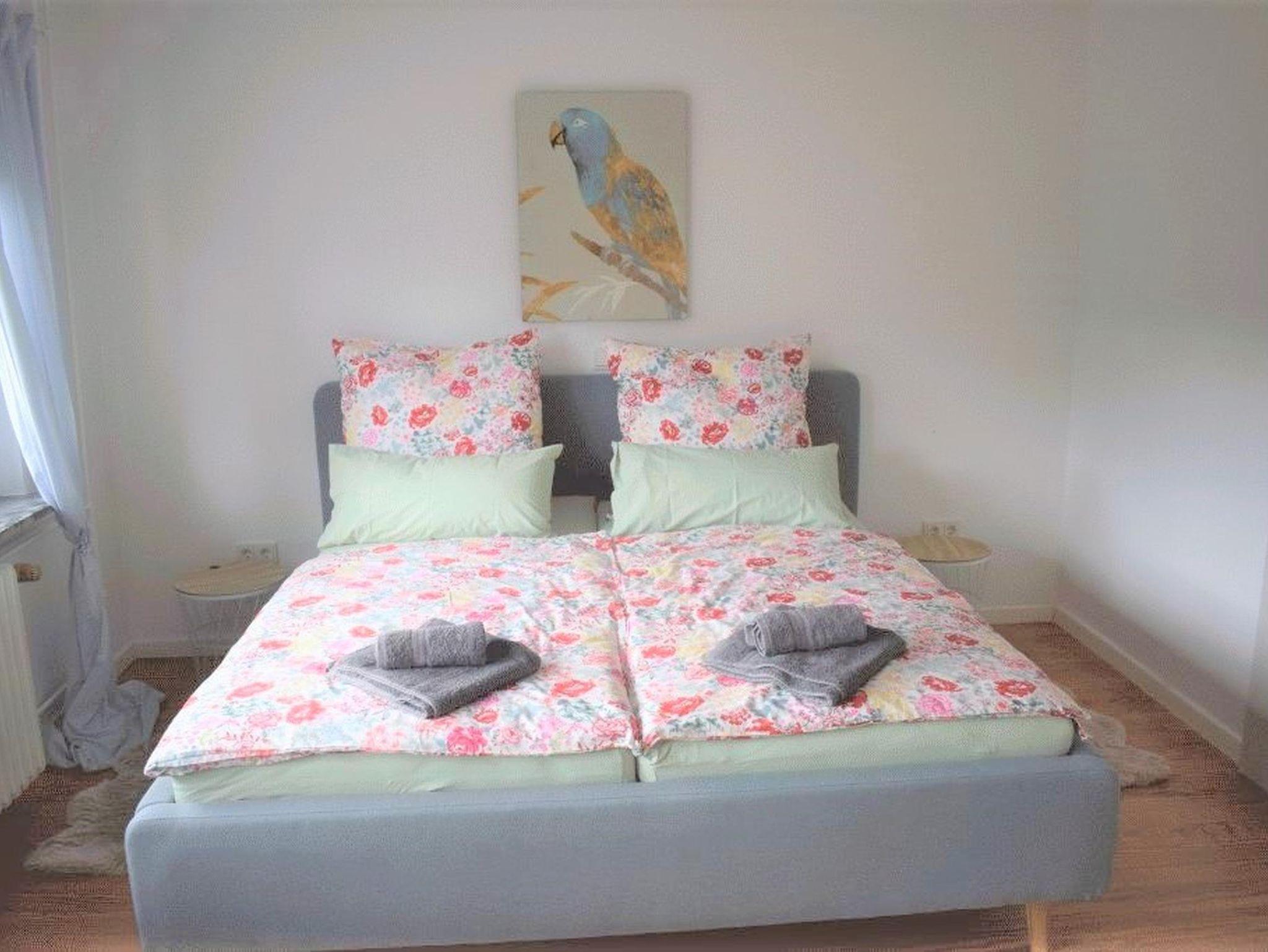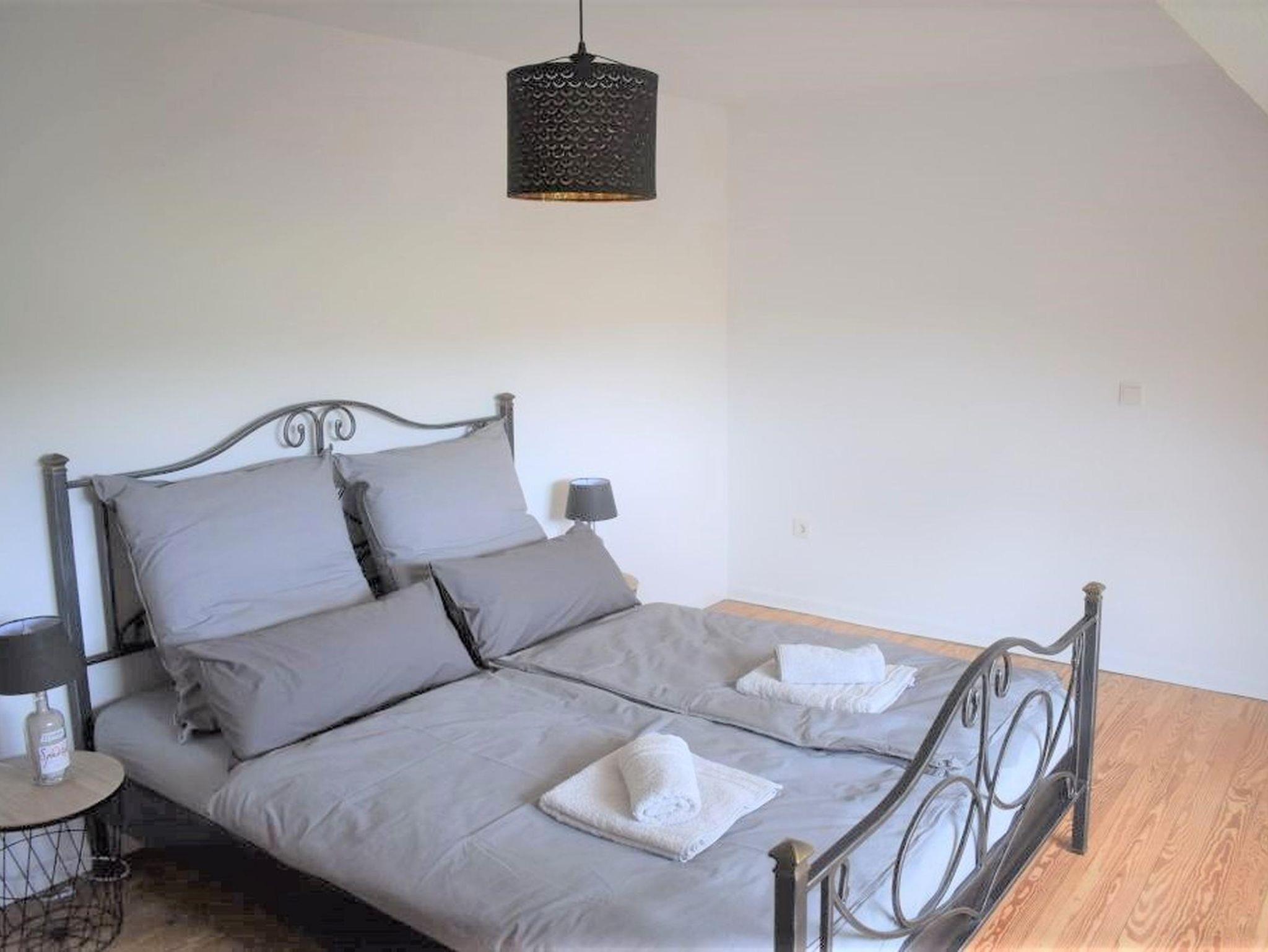 Das 2. OG bietet Ihnen ein weiteres Schlafzimmer mit Doppelbett, einer Schlafcouch und wunderschönem Ausblick in die idyllische Natur, sowie ein Gästebad.