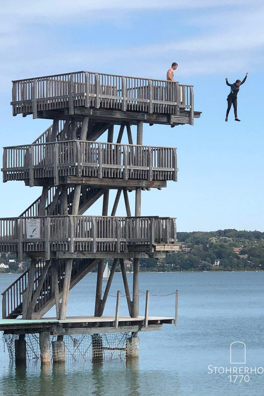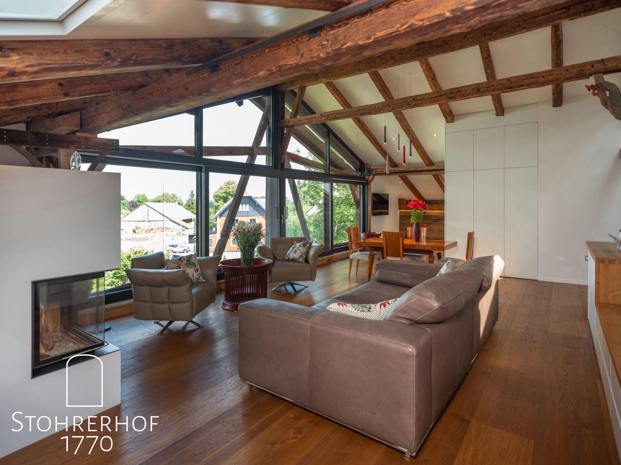 In April 2019 we completed the penthouse in the estate "Gut Stohrerhof", which with its almost 100 square meters unique in character allows up to four guests a special holiday experience. This loft-style apartment in the attic of the founding of Riederau am Ammersee consists almost of a single large room, has an open kitchen with microwave, oven, Bora hob, coffee machine and all the amenities of a fully equipped luxury kitchen. With two bathrooms and toilets fitted with an American woodworker's wood washbasins and a generous shower with rain and hand shower, heated shaving mirror and ambient lighting, you'll quickly find yourself in a very special place. Our two double beds (1.80 x 2.00 m) are among the additional special highlights. At the push of a button, both beds push on request electrically to sleep from the knee sticks. An old barn door offers in this generous ambience the possibility to find a retreat in this loft. And it is particularly pleasant that at the touch of a button, the double beds, whether made or not, disappear again in the knee skirt and the large room is unrestricted as a living room always tidy available. We do not want to conceal the fact that in the spacious seating area with its exclusive leather sofa and leather armchairs you can enjoy a wonderful view through the fully glazed façade or enjoy the romantic fire in the fireplace. Everyone will find their place here. Through the modern Sonos music system you have the opportunity to listen to our or your private music services such as. Spotify, YouTube Music and much more. In addition, the Smart Home TV allows you direct access to your Netflix account or other video services such as YouTube, Amazon Prime and many more. Of course, our high-performance Wi-Fi is available free of charge.