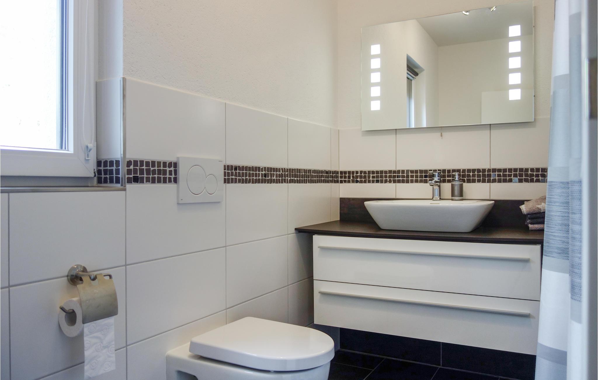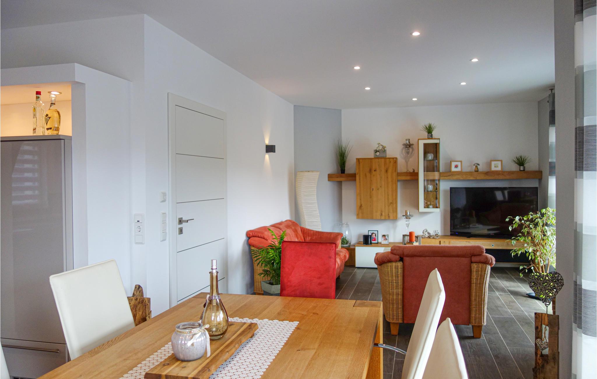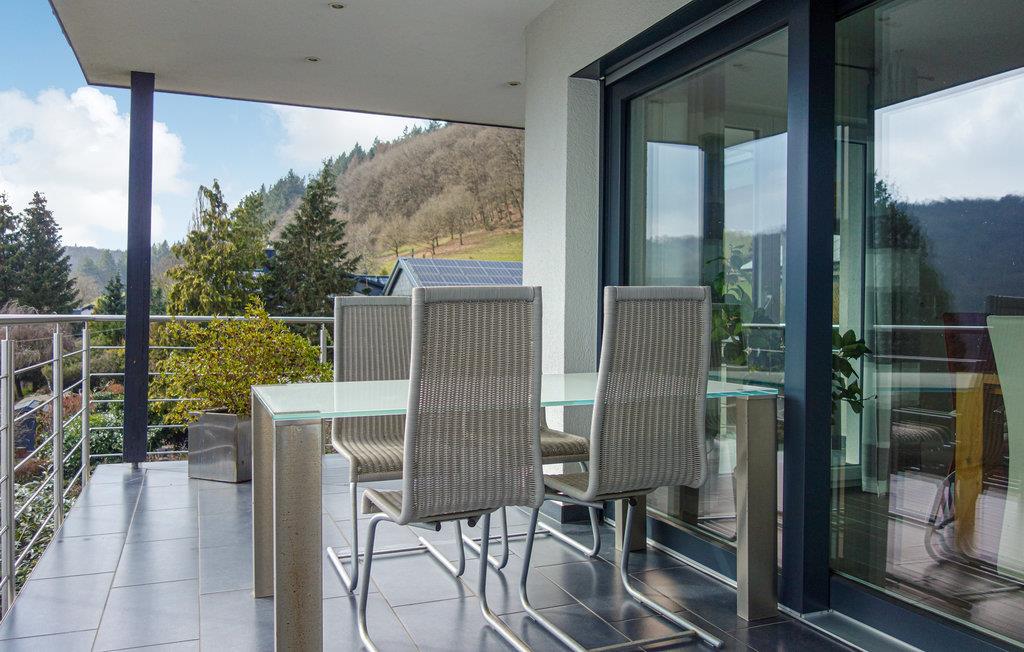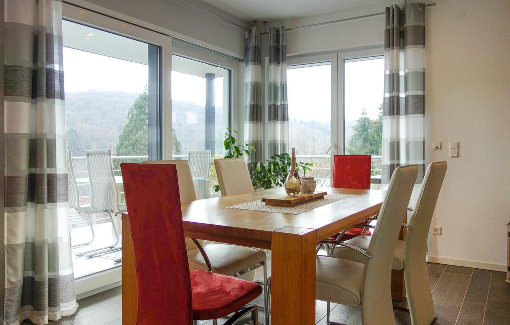 Opmærksom på naturelskere, i dette indbydende hus kan I føle jer godt tilpas med hele familien og nyde den varierede natur i Eifel til fulde. de lyse lokaler med deres hyggelige indretning i varme farver skaber en hyggelig atmosfære og byder på masser af plads til at slappe af sammen. på grund af gulv-til-loft vinduerne kan I spise her med en fantastisk udsigt over omgivelserne. På terrassen kan I nyde solen og udsigten i fulde drag, lade blikket vandre over skovens frodige grønne med jeres første kaffe og glæde jer til alle de udflugter, som I kan tage på herfra.