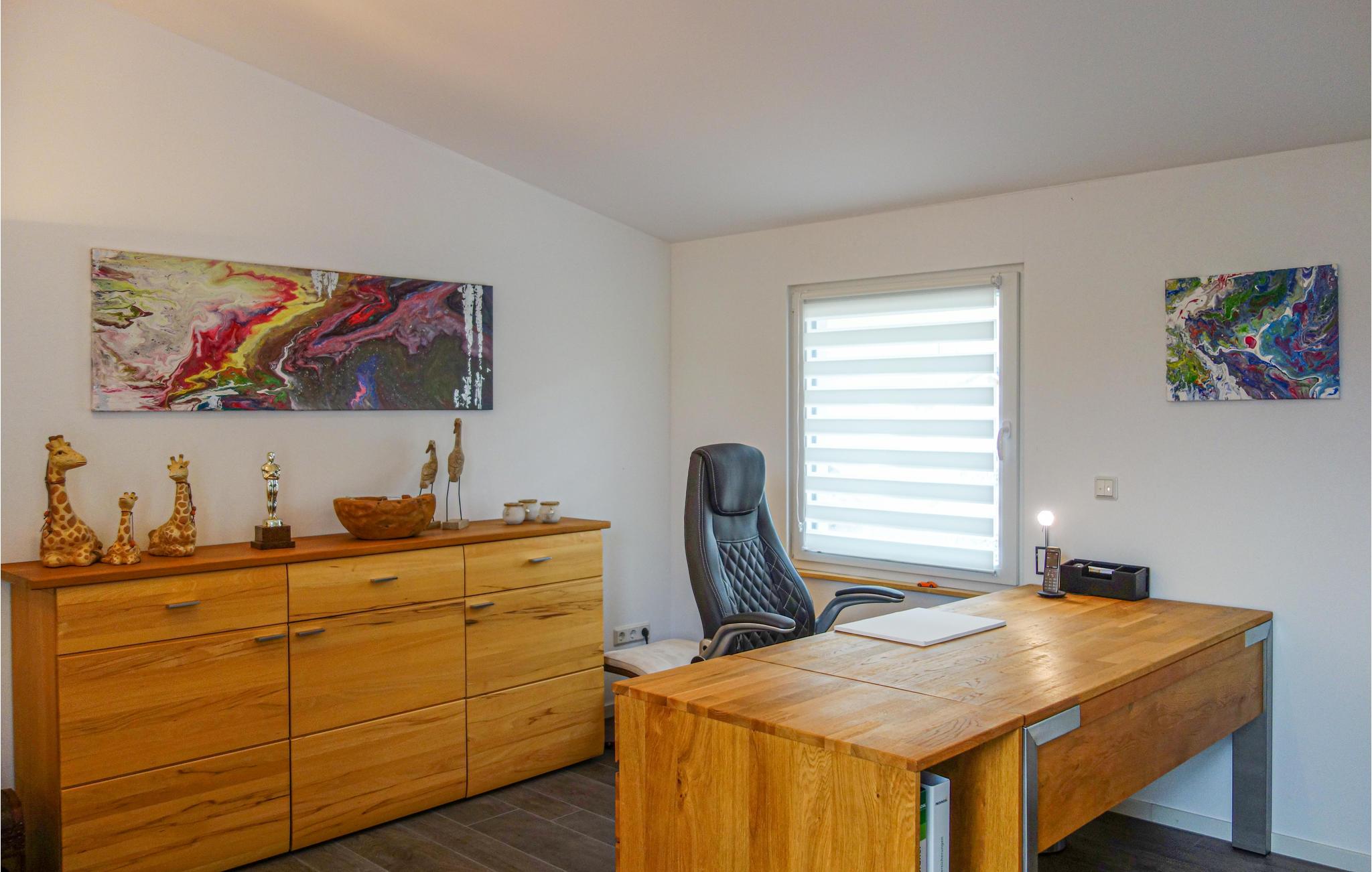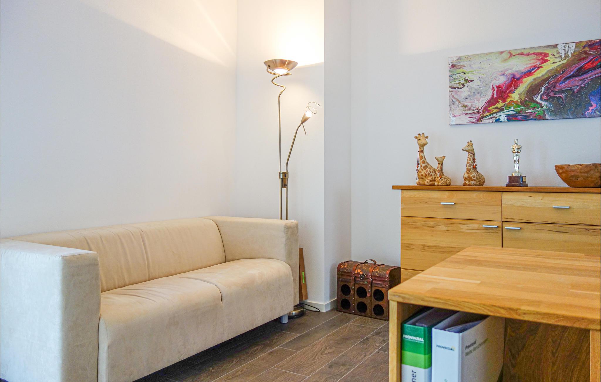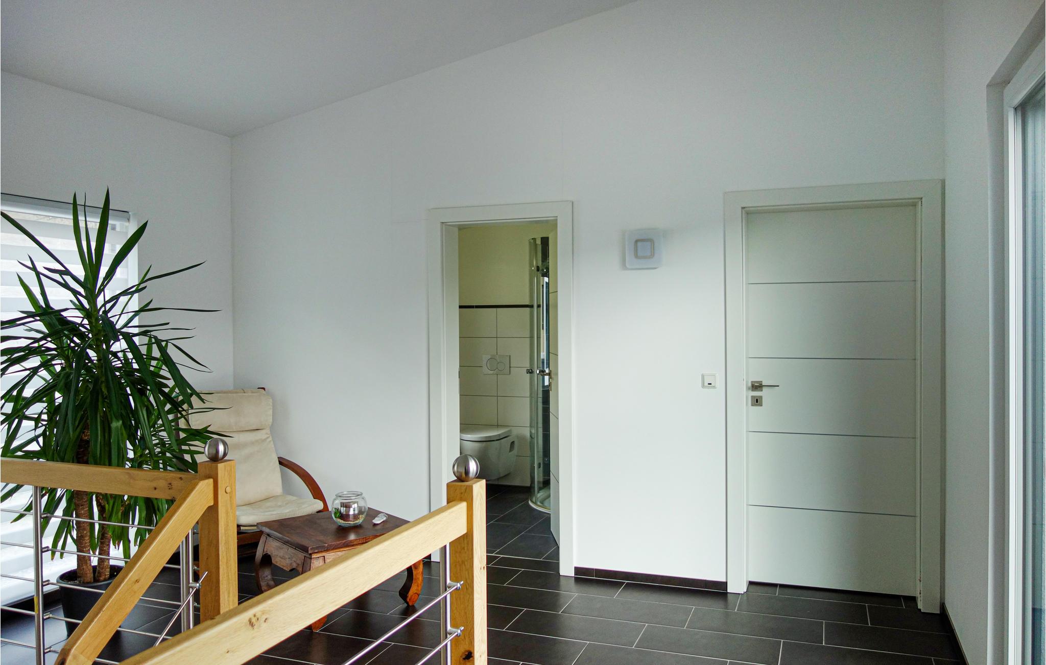 Opmærksom på naturelskere, i dette indbydende hus kan I føle jer godt tilpas med hele familien og nyde den varierede natur i Eifel til fulde. de lyse lokaler med deres hyggelige indretning i varme farver skaber en hyggelig atmosfære og byder på masser af plads til at slappe af sammen. på grund af gulv-til-loft vinduerne kan I spise her med en fantastisk udsigt over omgivelserne. På terrassen kan I nyde solen og udsigten i fulde drag, lade blikket vandre over skovens frodige grønne med jeres første kaffe og glæde jer til alle de udflugter, som I kan tage på herfra.