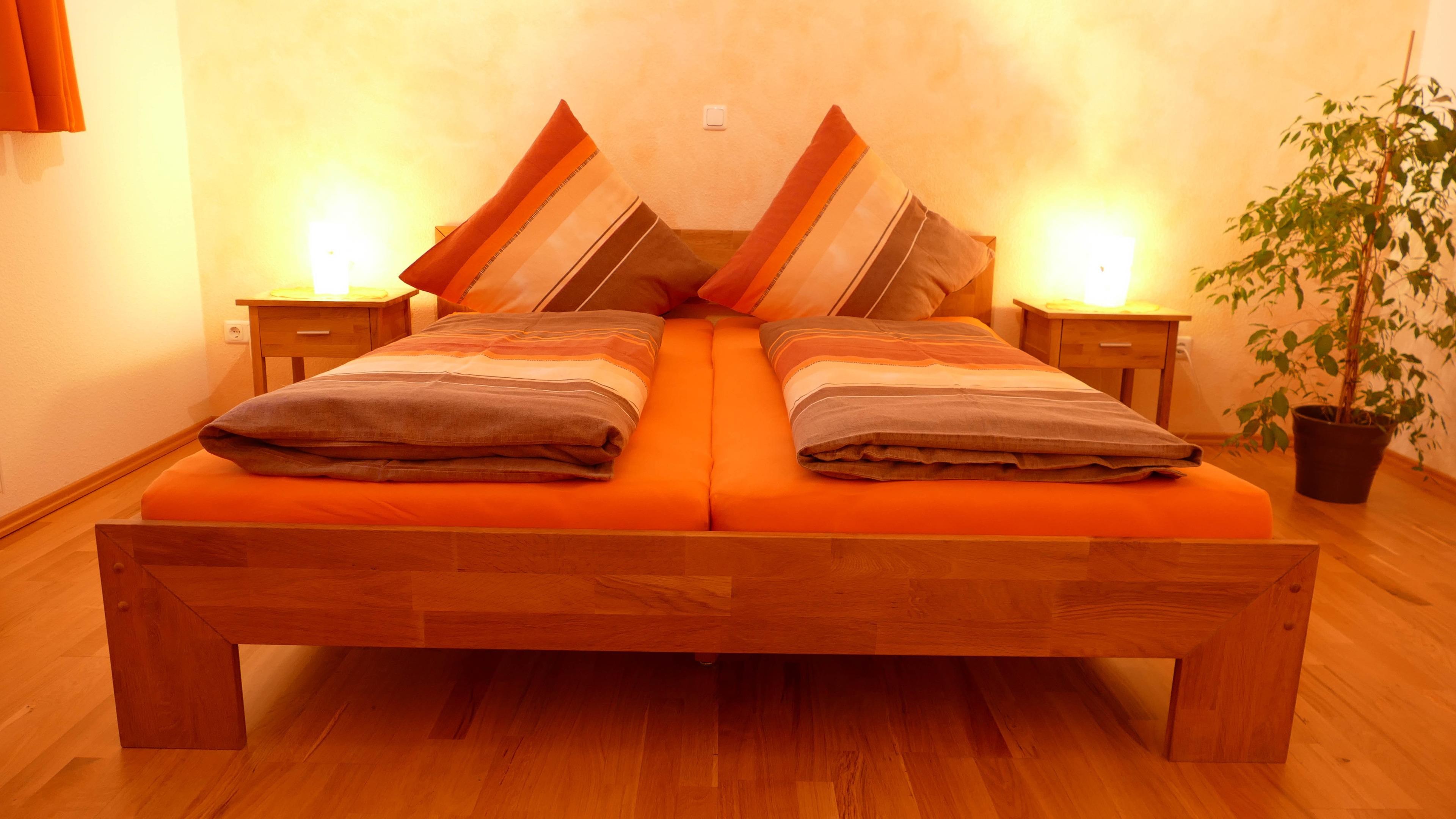 Auch dass wir vorab mit ihnen abklären, ob sie lieber hart oder weich schlafen und wir die Lattenroste passend einstellen, sie sich die Art der Bettwäsche (Biber, Baumwolle, oder Mikrofaser) aussuchen können und wir je nach Wunsch das Schlafzimmer passend aufheizen trage auch seinen Teil zum "Schlaferlebnis" bei.
