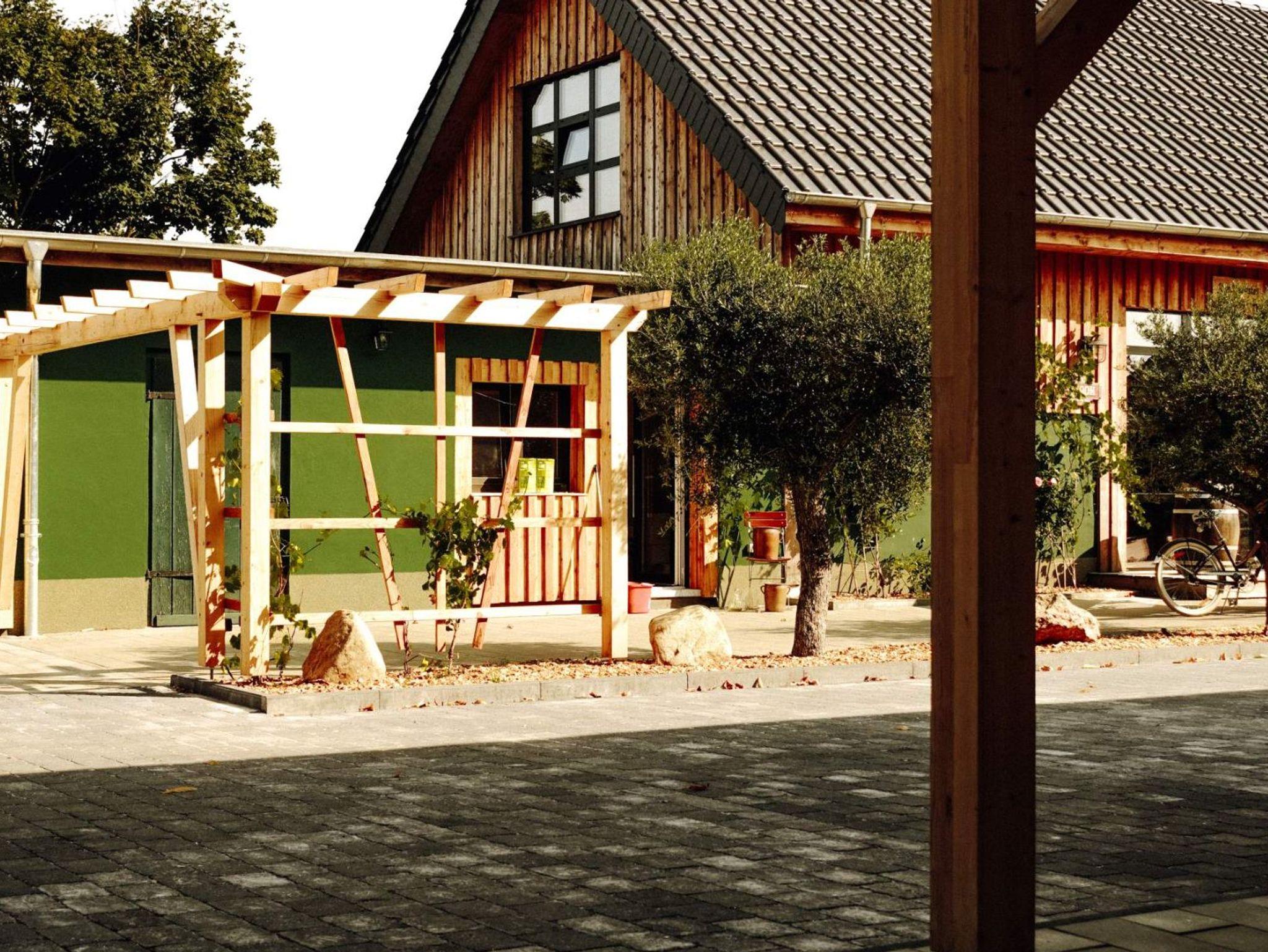 Der weitläufige Außenbereich unseres Ferienhofs lädt zum Verweilen ein. Nutzen Sie die gemütlichen Sitz- und Grillmöglichkeiten oder unseren traditionellen Backofen für gesellige Abende unter freiem Himmel. Umgeben von saftigem Grün und der ruhigen Atmosphäre des Brandenburger Landes finden Sie hier den idealen Ort, um die Hektik des Alltags hinter sich zu lassen.