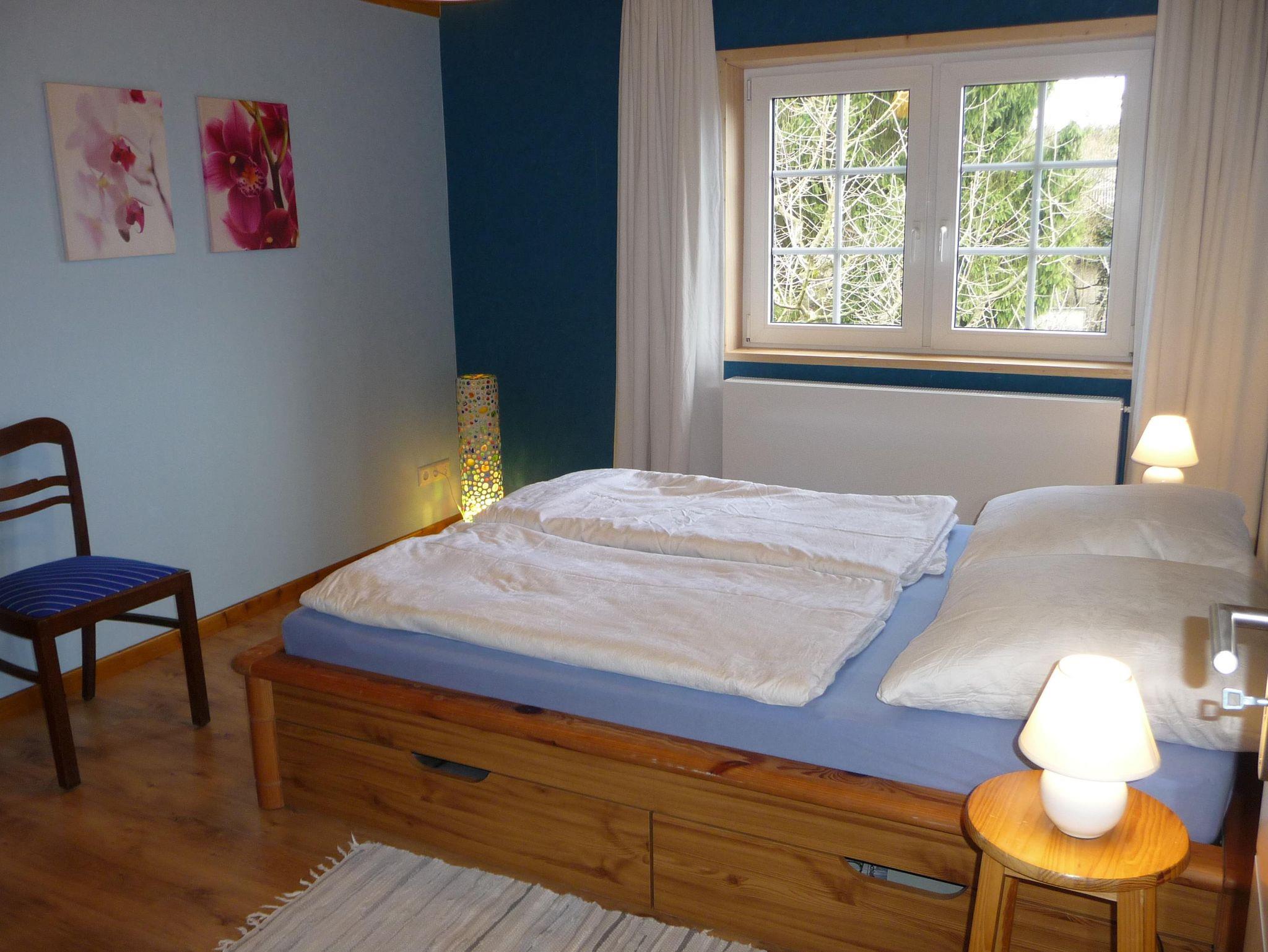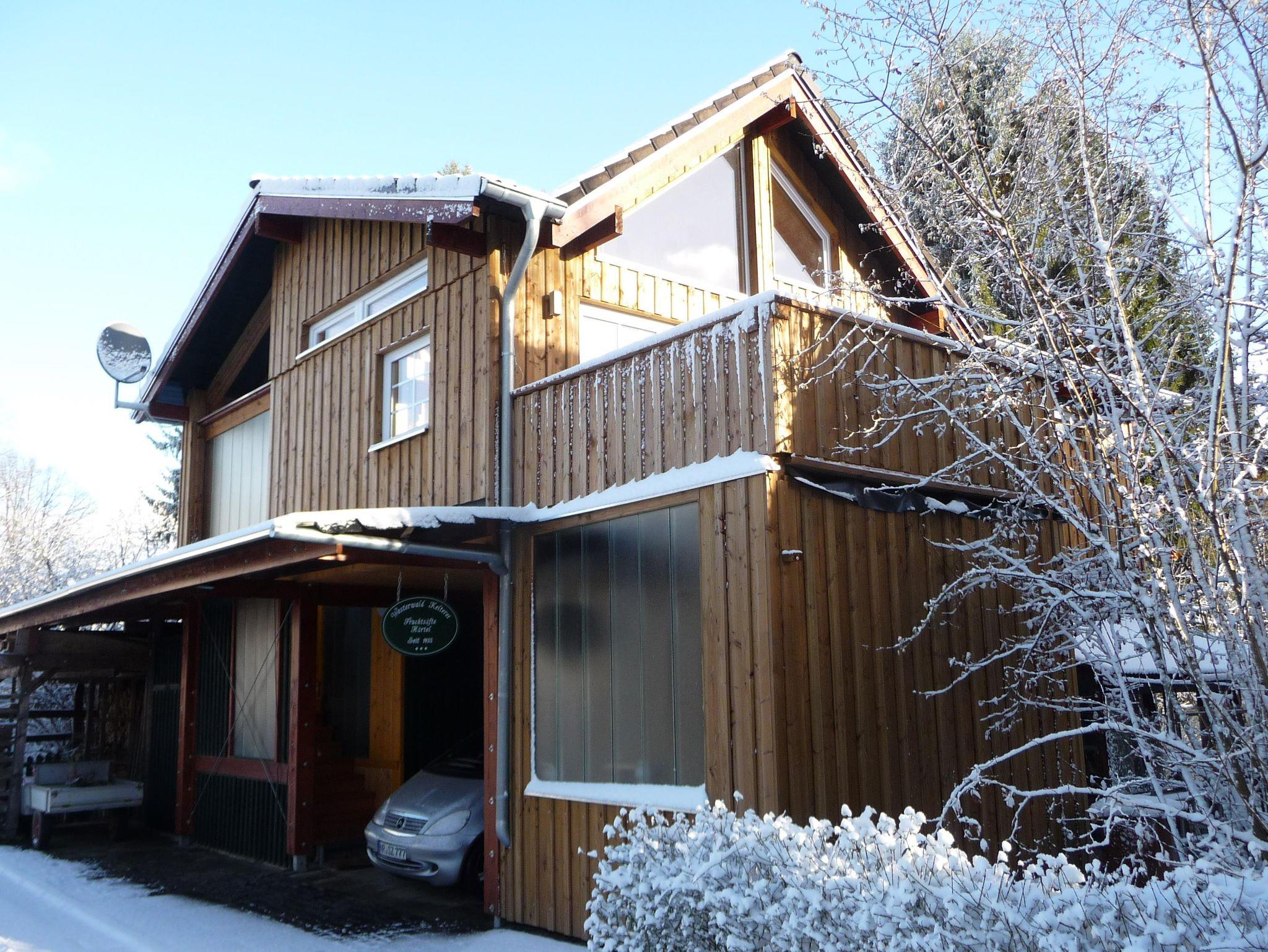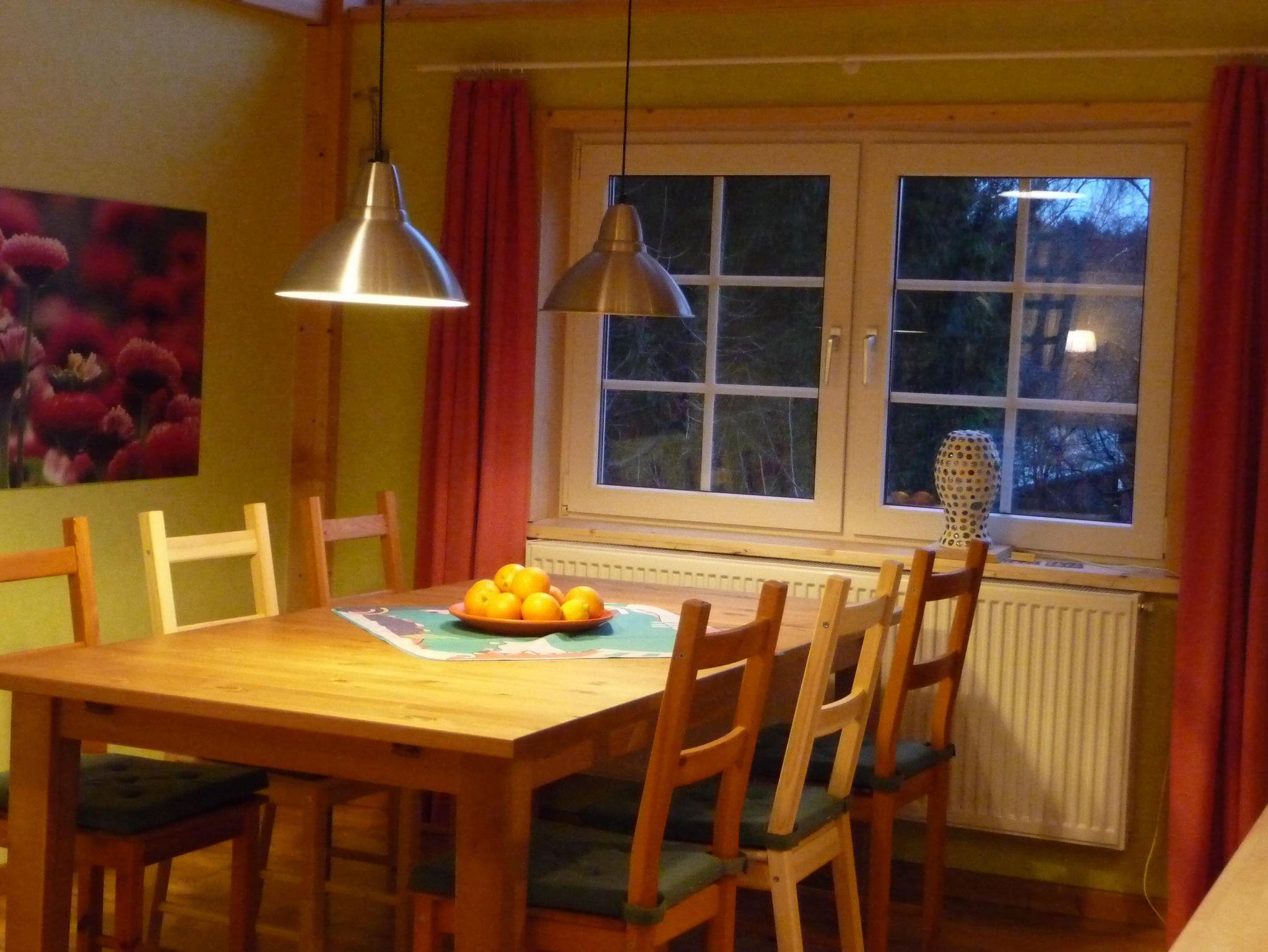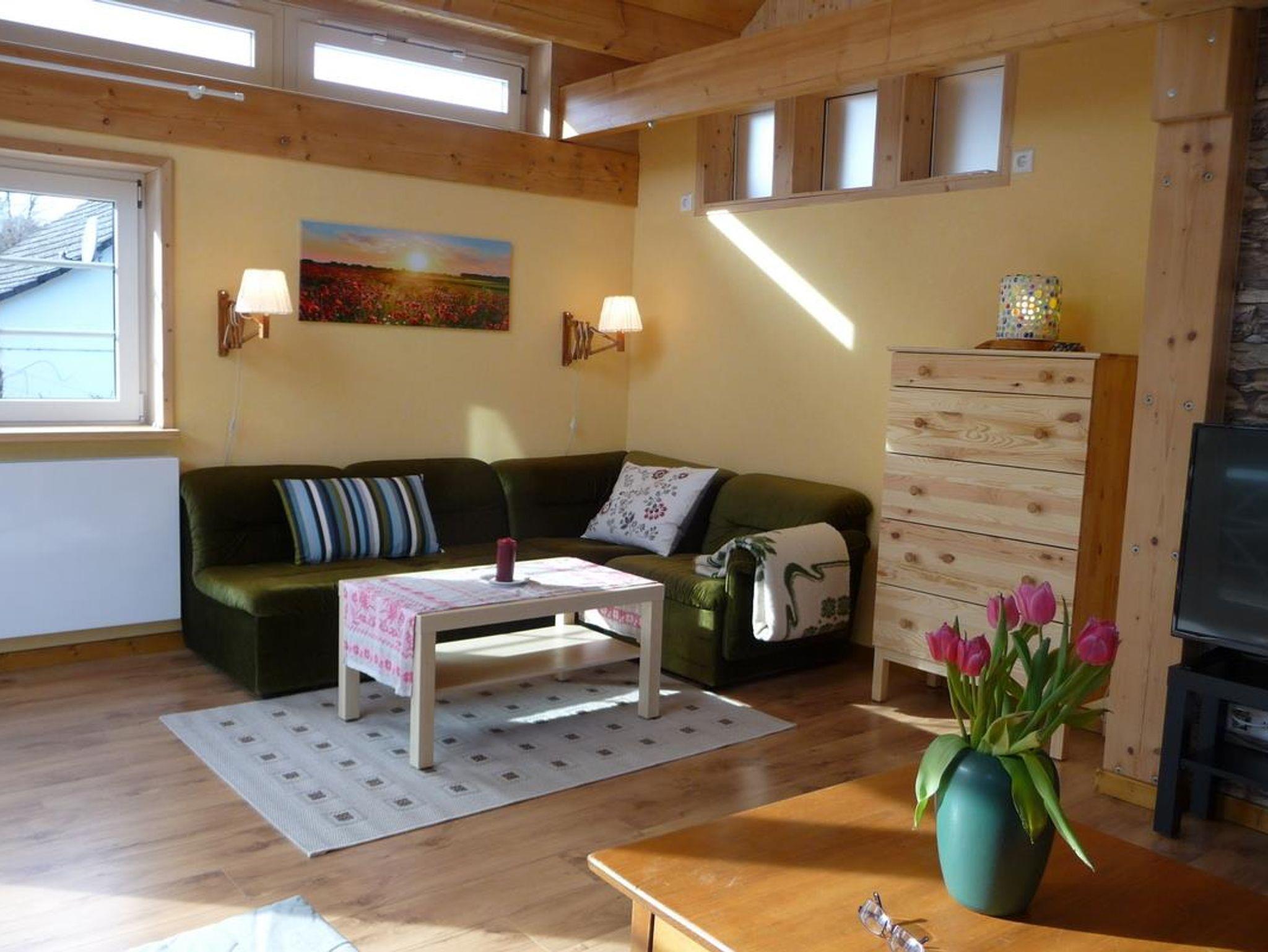 Das moderne, gemütliche Ferienhaus in Holzbauweise liegt im Herzen des Westerwaldes 2km vom Mittelzentrum Dierdorf entfernt und verkehrsgünstig zur 7 km entfernten Autobahn A3. Das 2017 fertiggestellte Ferienhaus auf 90 Quadratmetern thront, auf dicken Holzpfeilern gebaut, hoch über dem Garten. Mit viel Holz außen und innen strahlt das lichtdurchflutete Haus Wärme und Behaglichkeit aus. In der großzügigen und offenen Bauweise kann man sich mit bis zu acht Personen bequem aufhalten, aber dennoch bleiben Rückzugsmöglichkeiten hinter der Wohntheke, auf der Empore oder der Koje überm Wohnzimmer, die man über eine keine Holztreppe erreicht. Das separarte Schlafzimmer bietet ohnehin Entspannungsmöglichkeiten, da es zur Gartenseite und völlig ruhig gelegen ist. In der Wohnküche ist viel Platz zum Kochen. Der große Esstisch lässt sich auf drei Meter Länge ausziehen. Der neun Quadratmeter große Balkon ist nach Süden ausgerichtet und bietet durch die Holzverkleidung der Brüstung entsprechenden Sichtschutz. Dennoch schaut man auf das Grün des Gartens. Im Winter wärmt die Sonne das Haus über die lange Südseite mit den großen Fenstern. Im heißen Sommer spenden die umstehenden Bäume den nötigen Schatten. Kurzum: Im Sommer sind die Räume kühl und durchlüftet, im Winter behaglich warm. Wir betreiben eine kleine Imkerei und Süßmosterei, wovon zwei Bienenstöcke im Garten stehen zur Bestäubung unserer Obstbäume. Den Honig und den Apfelsaft von westerwälder Streuobstwiesen können Sie bei uns immer frisch erwerben.