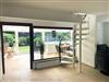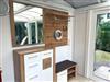 Im Erdgeschoss befindet sich der lichtdurchflutete Wohnbereich mit einem großzügigen Panoramafenster, das nicht nur für viel Tageslicht sorgt, sondern auch einen herrlichen Blick in den Garten bietet. In den heißen Sommermonaten bleibt der Raum angenehm kühl – dank der integrierten Klimaanlage. Direkt vor dem Fenster lädt ein gemütliches Ecksofa zum Entspannen ein, das bei Bedarf als zusätzliche Schlafgelegenheit für ein bis zwei Personen genutzt werden kann.