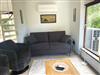 Im Erdgeschoss befindet sich der lichtdurchflutete Wohnbereich mit einem großzügigen Panoramafenster, das nicht nur für viel Tageslicht sorgt, sondern auch einen herrlichen Blick in den Garten bietet. In den heißen Sommermonaten bleibt der Raum angenehm kühl - dank der integrierten Klimaanlage. Direkt vor dem Fenster lädt ein gemütliches Ecksofa zum Entspannen ein, das bei Bedarf als zusätzliche Schlafgelegenheit für ein bis zwei Personen genutzt werden kann.