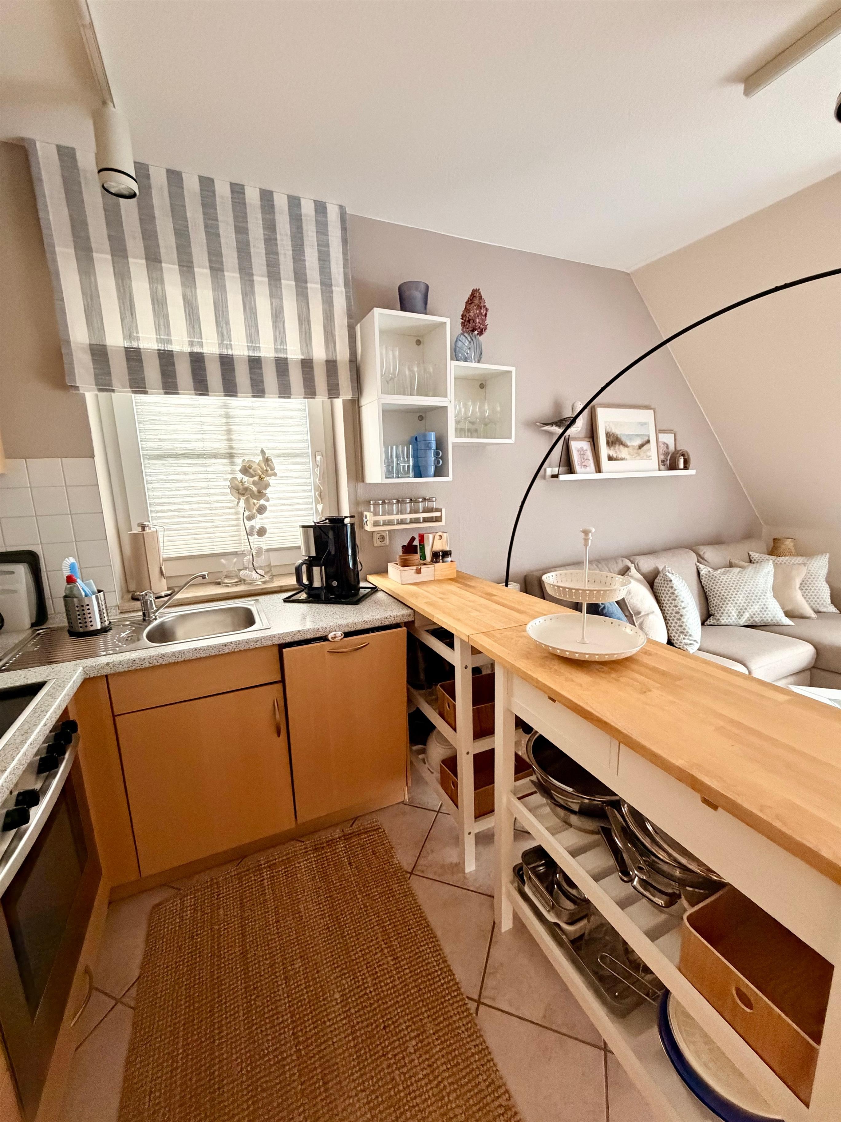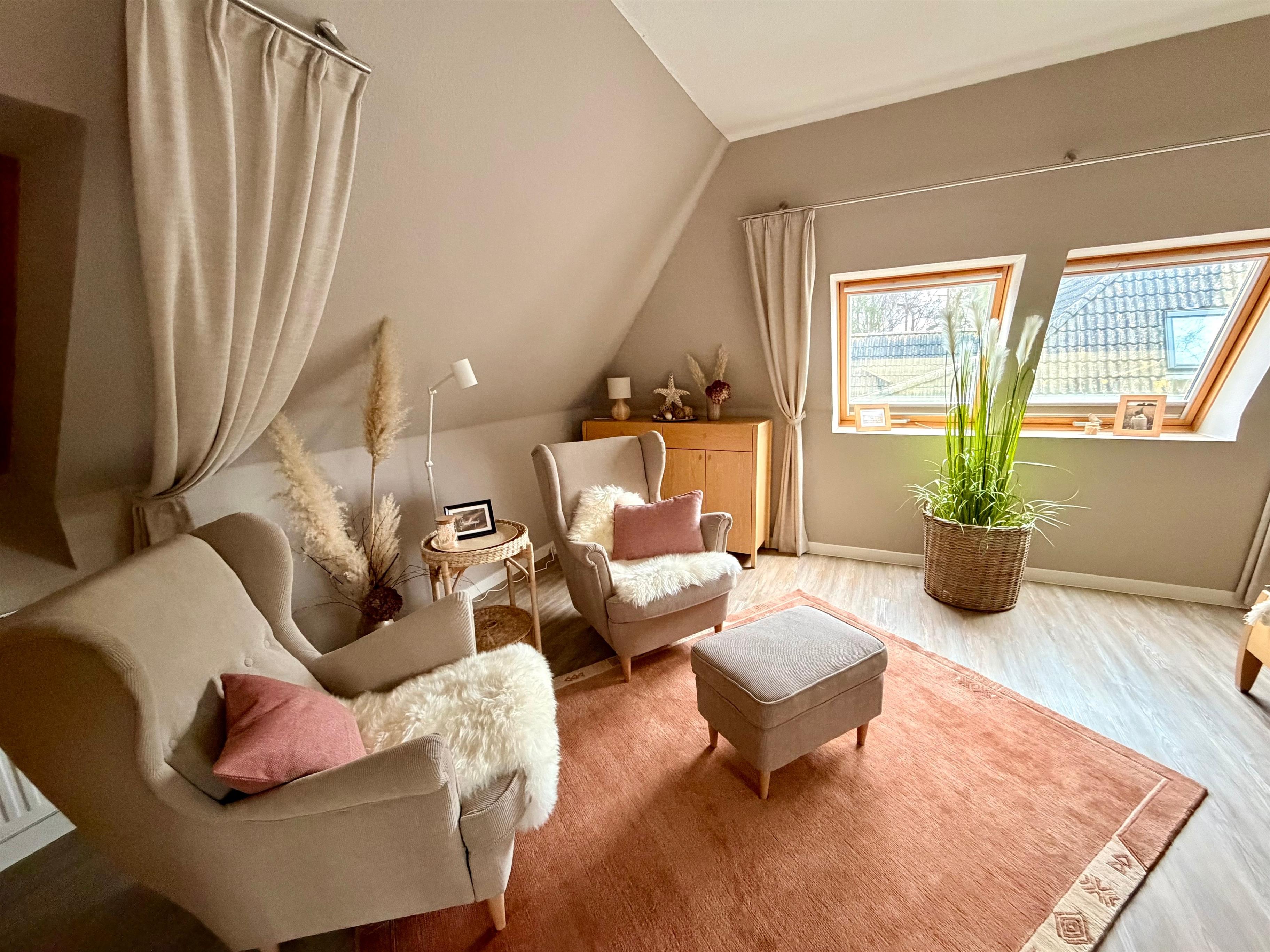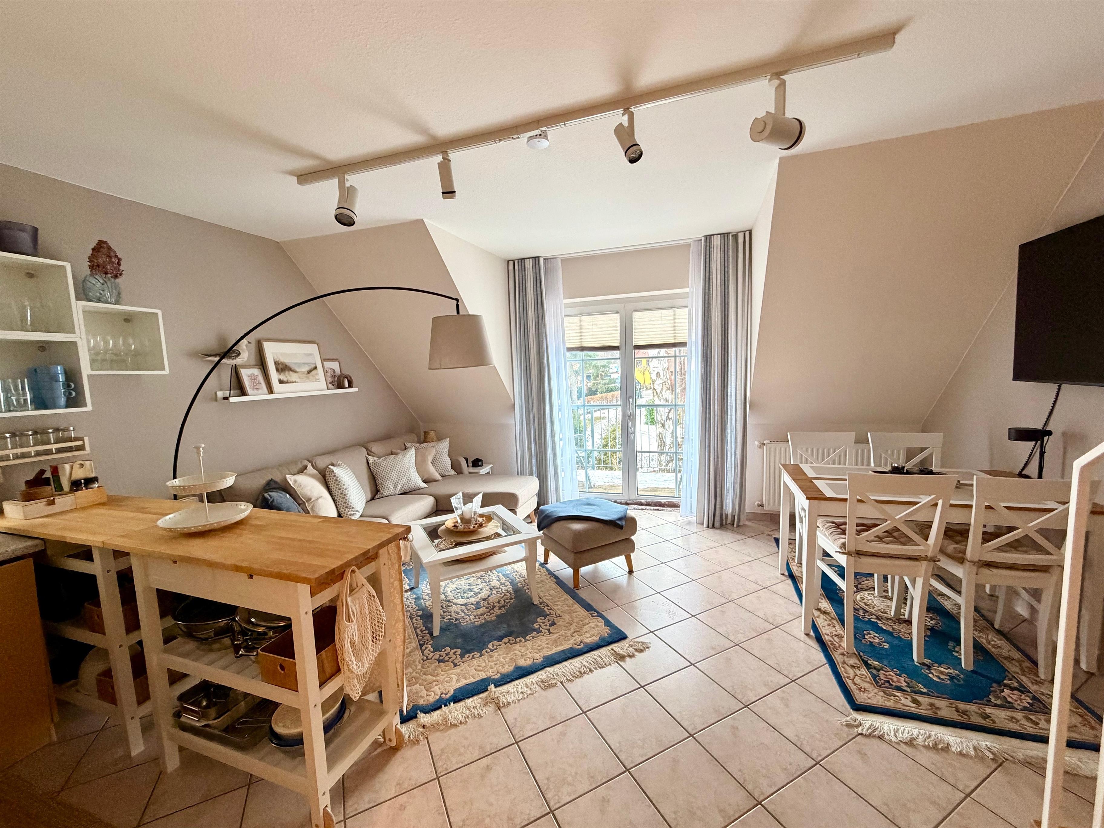 Gemütliche und stilvoll eingerichtete Nichtraucher-Ferienwohnung im Maisonettestil in strandnaher Lage – ideal für erholsame Urlaubstage. Der helle Wohnbereich mit offener, voll ausgestatteter Wohnküche lädt zum gemeinsamen Kochen und Entspannen ein und bietet viel Platz für gemütliche Abende.