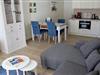 Das Appartement ist durchgängig gefliest mit Fußbodenheizung,einem großen Wohnraum,2 Schlafzimmer und einem modernen Aussenbad.