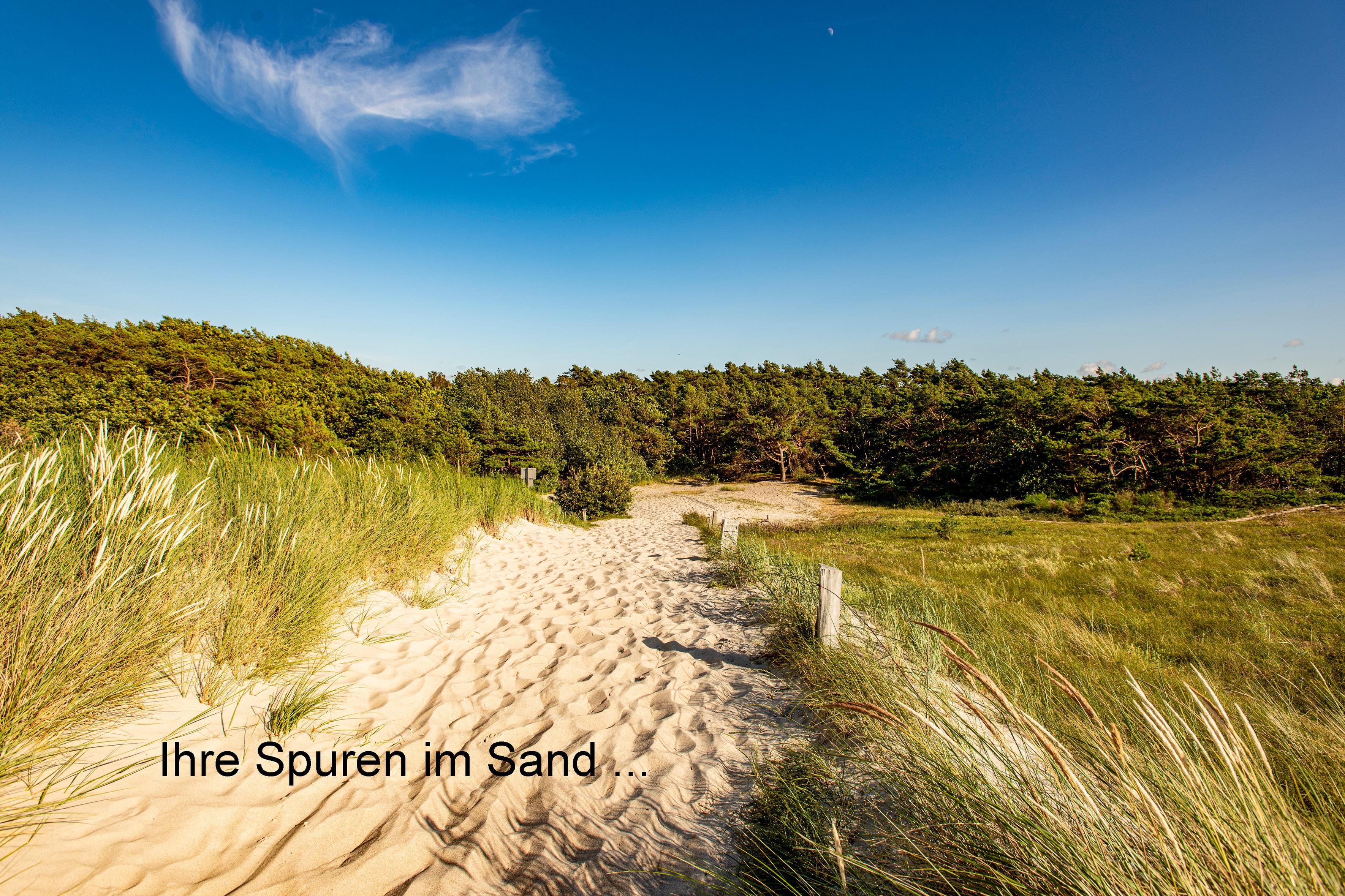 Ein breiter Sandstrand hinter den Dünen lädt zum Baden in einem der sonnenreichsten Orte Deutschlands ein. Zum feinen Sandstrand sind es nur 450 m.