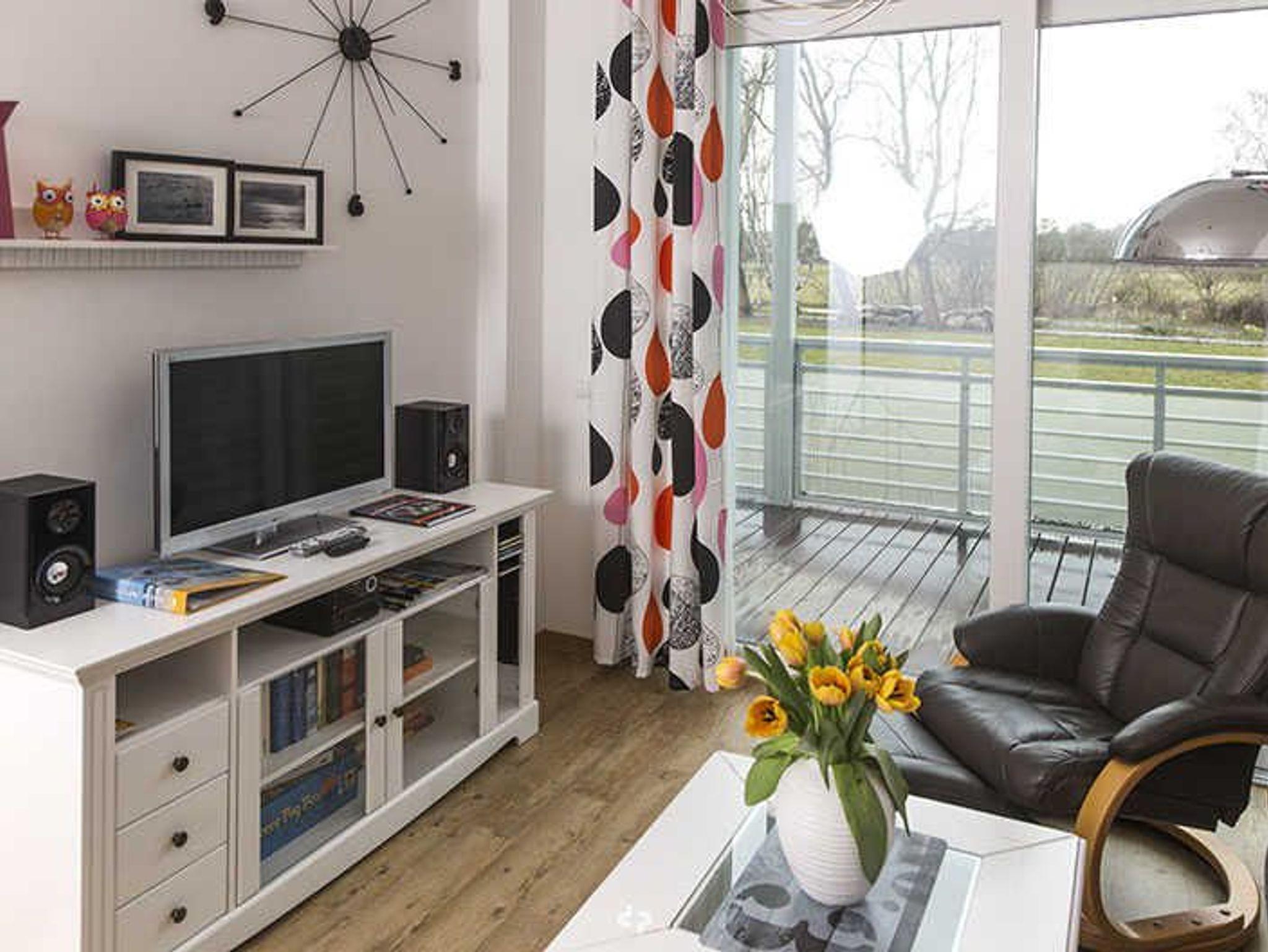 Das Appartement hat ein großes Wohnzimmer mit offener Küche. Ihnen steht im Wohnraum ein gemütliches Sofa (ausziehbar 1,60m breit) und zwei bequeme, verstellbare Sessel zur Entspannung zur Verfügung. Der moderne Flachbildfernseher sowie eine Soundanlage können außerhalb Ihrer Aktivitäten genutzt werden. Die hochwertige Einbauküche ist ausgestattet mit einem Cerankochfeld, Backofen, Kühlschrank (mit TK-Fach) und Geschirrspüler. Der integrierte Essplatz ermöglicht Ihnen kommunikative Essenszubereitung und -einnahme.