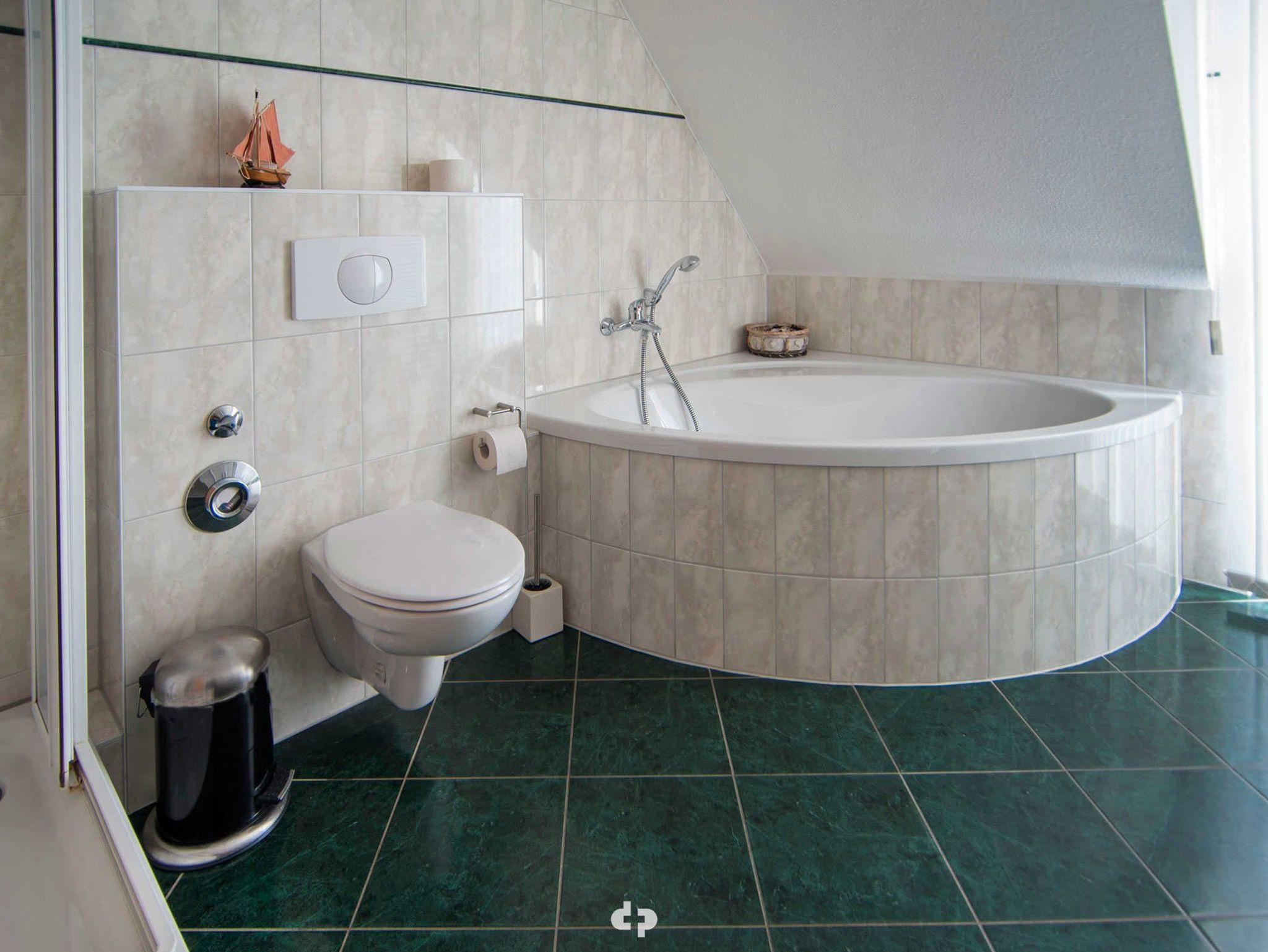 • Zur Verfügung stehen 2 Schlafzimmer mit jeweils 1 Doppelbett (Liegefläche 180x200). Neben dem einen Schlafzimmer befindet sich das sehr komfortabel ausgestattete Bad mit großer Eckbadewanne, Dusche, Waschtisch und WC.