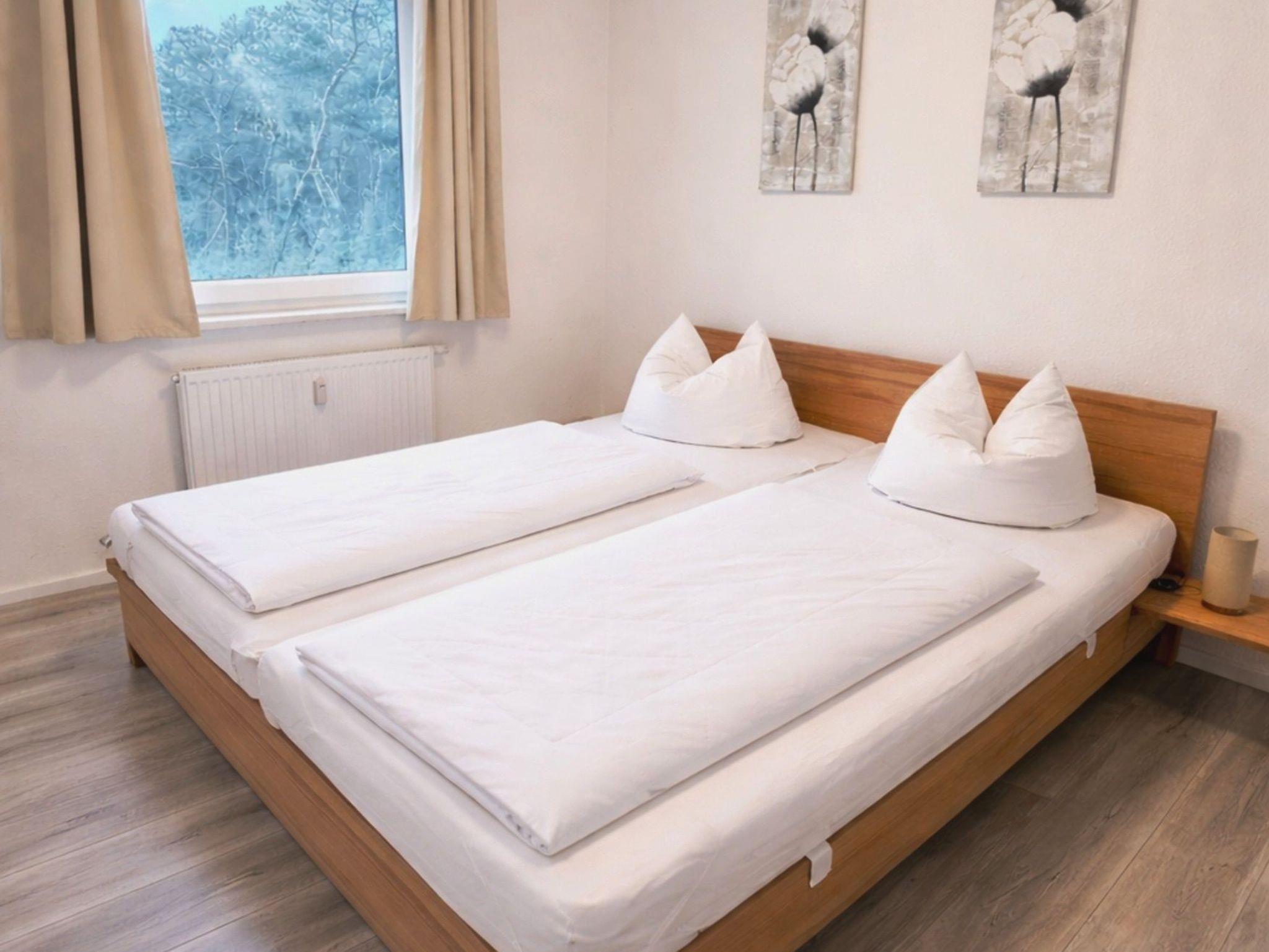 • Es stehen Ihnen zwei Schlafzimmer mit jeweils einem Doppelbett (180 x 200) zur Verfügung. Eines der Schlafzimmer ist zusätzlich mit einem Fernseher ausgestattet. Neben einem der Schlafzimmer befindet sich das komfortabel ausgestattete Bad mit großer Eckbadewanne, Dusche, Waschtisch und WC. Von hier aus gelangen Sie auf den Balkon mit Nord-/West-Ausrichtung.