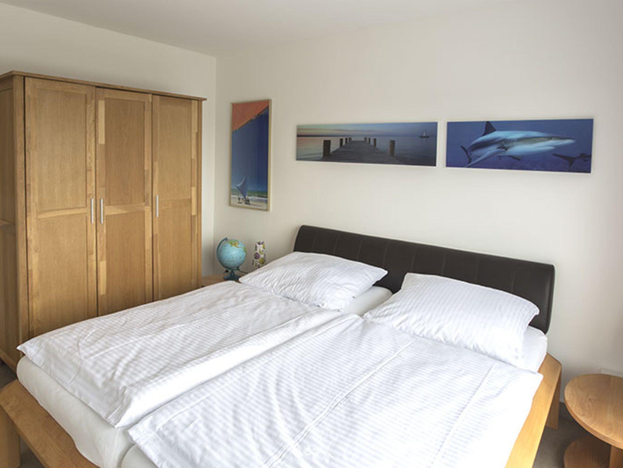 • Im Schlafzimmer befinden sich ein hochwertiges Doppelbett sowie ein 3-türiger Schlafzimmerschrank.