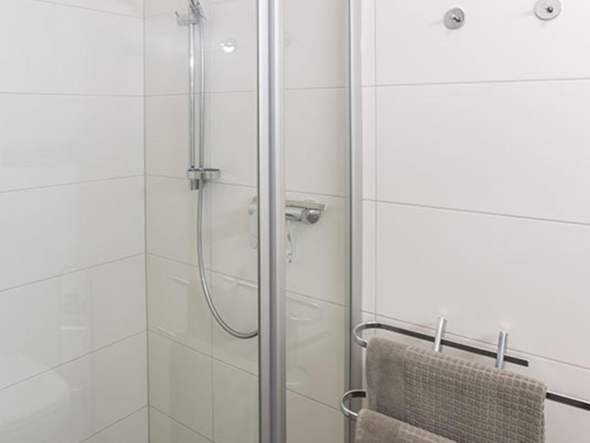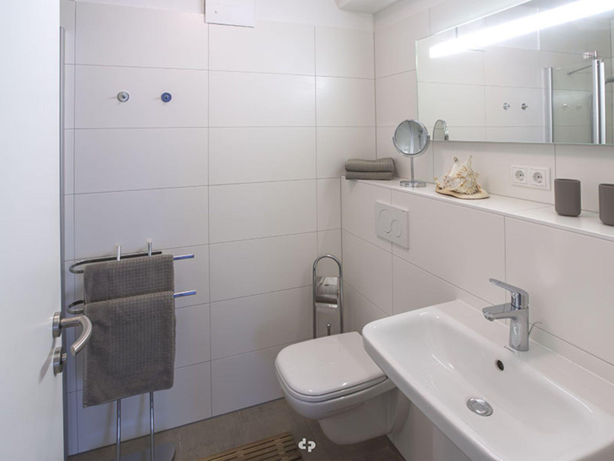 • Das Bad verfügt über eine großzügige Dusche, einen Waschplatz sowie einen Handtuchheizkörper.