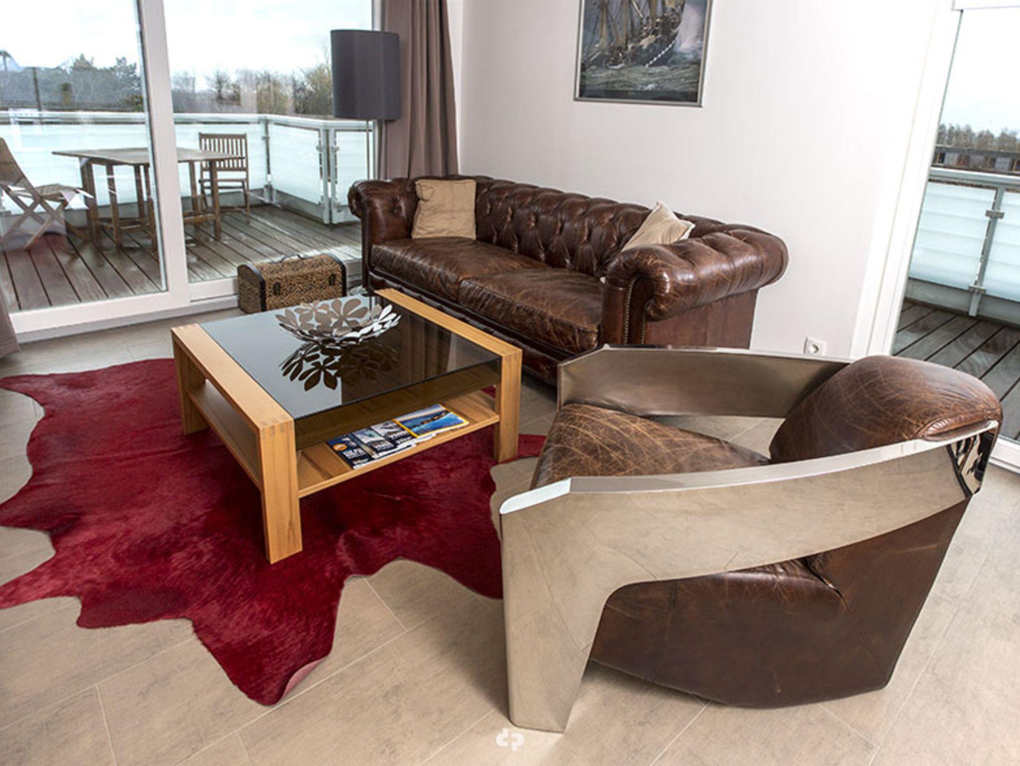 • Der Wohnbereich ist mit sehr schönen Möbeln, einer Ledercouch mit passendem Sessel sowie einer Wohnlandschaft ausgestattet.