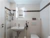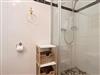 Das Bad verfügt über eine großzügige Dusche, einen Waschplatz und Handtuchheizkörper und WC.