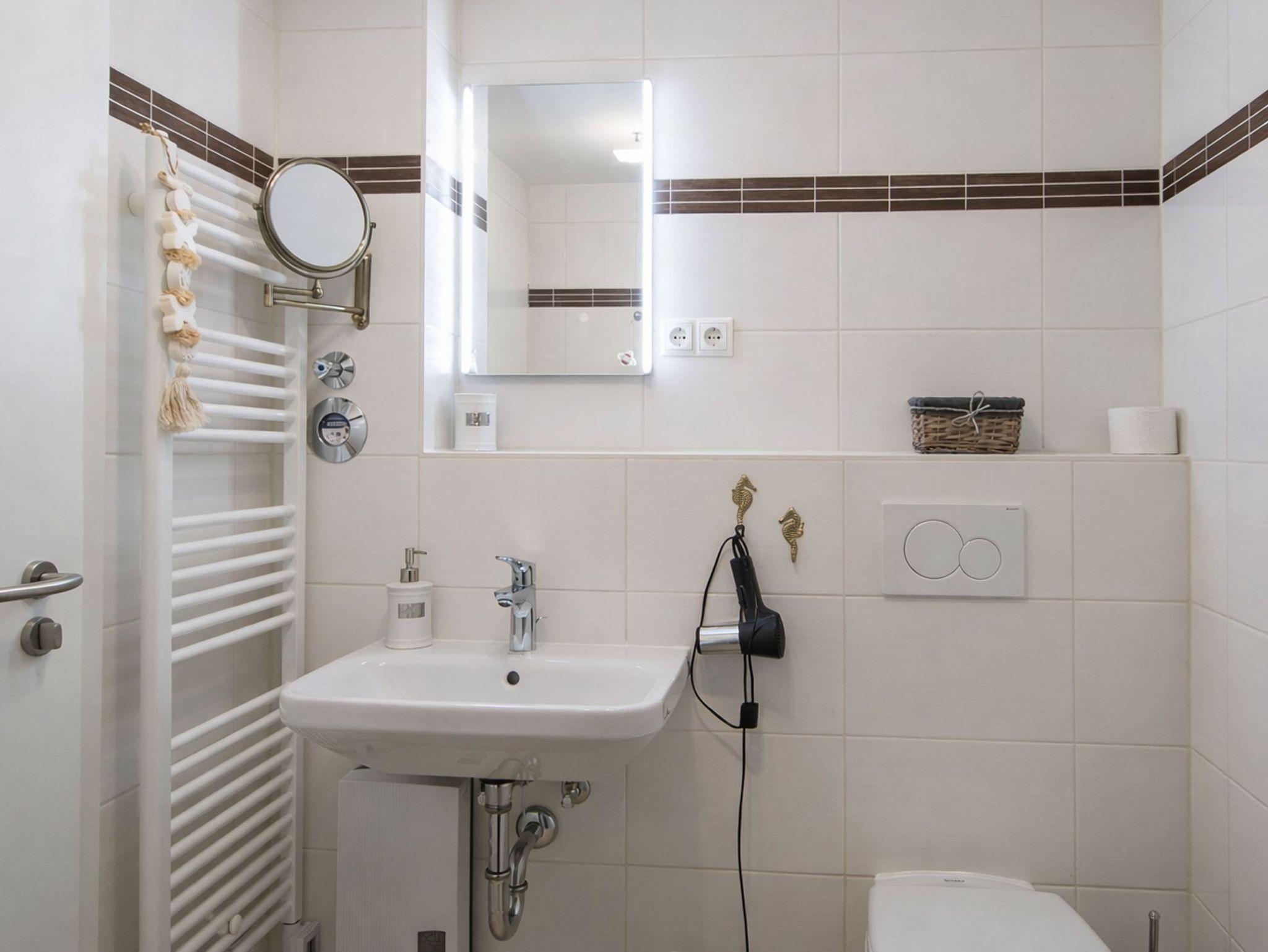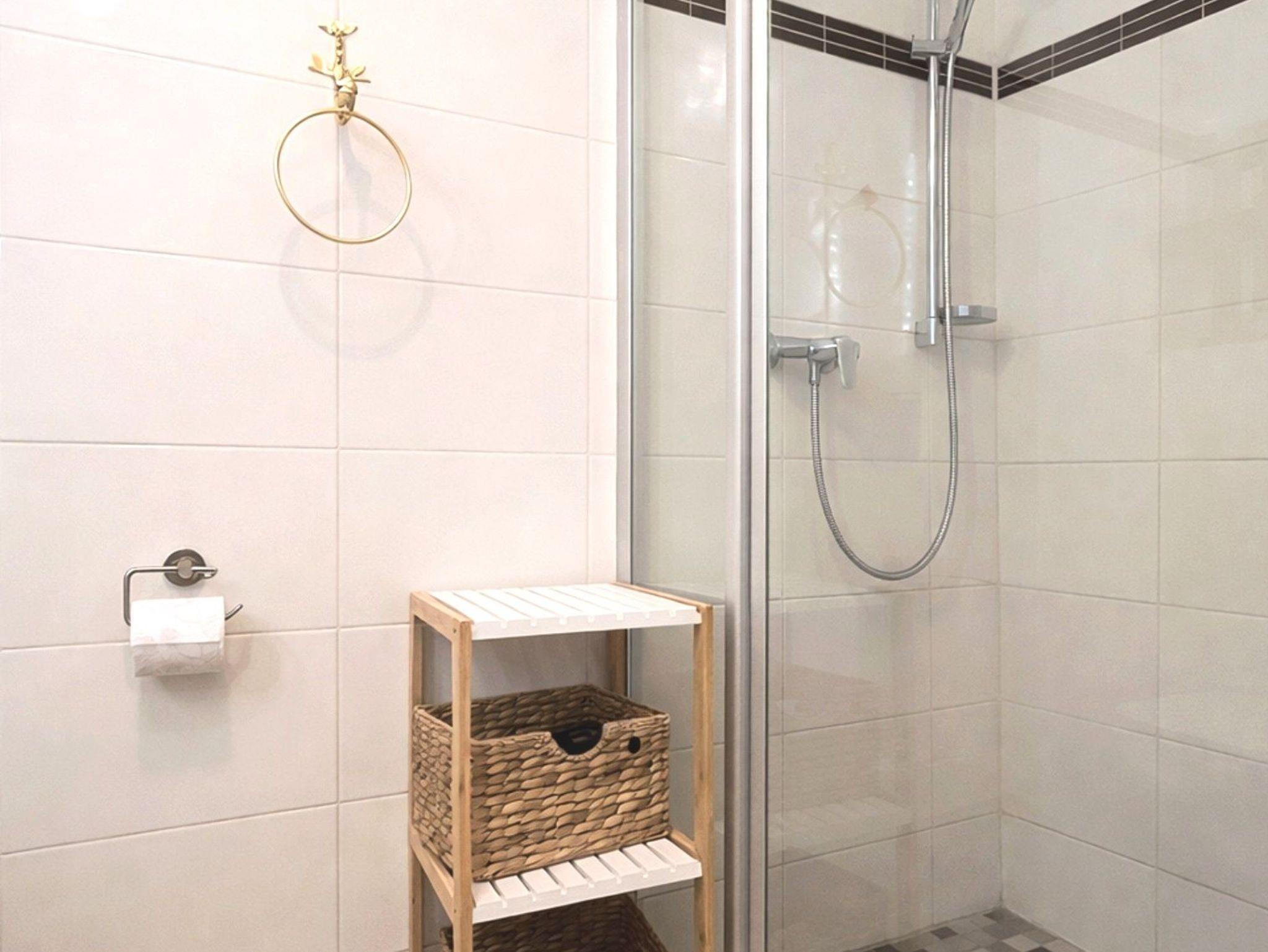 • Das Bad verfügt über eine großzügige Dusche, einen Waschplatz, einen Handtuchheizkörper sowie ein WC.