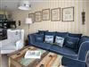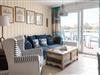 • Der Wohnbereich ist mit maritimen Möbeln, einer Couch mit passendem Sessel und TV ausgestattet.