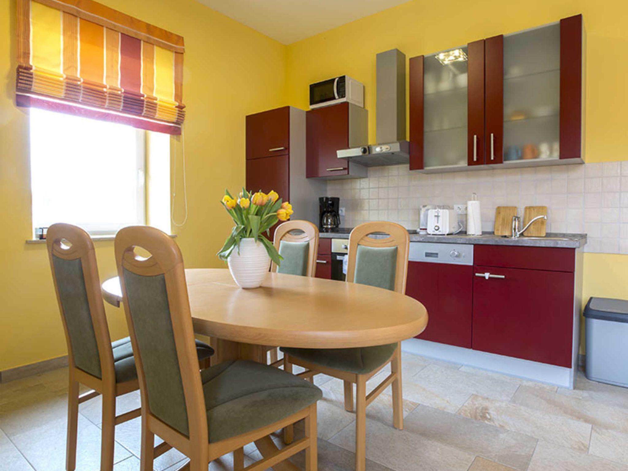 • Am Esstisch finden bequem 4 Personen Platz.