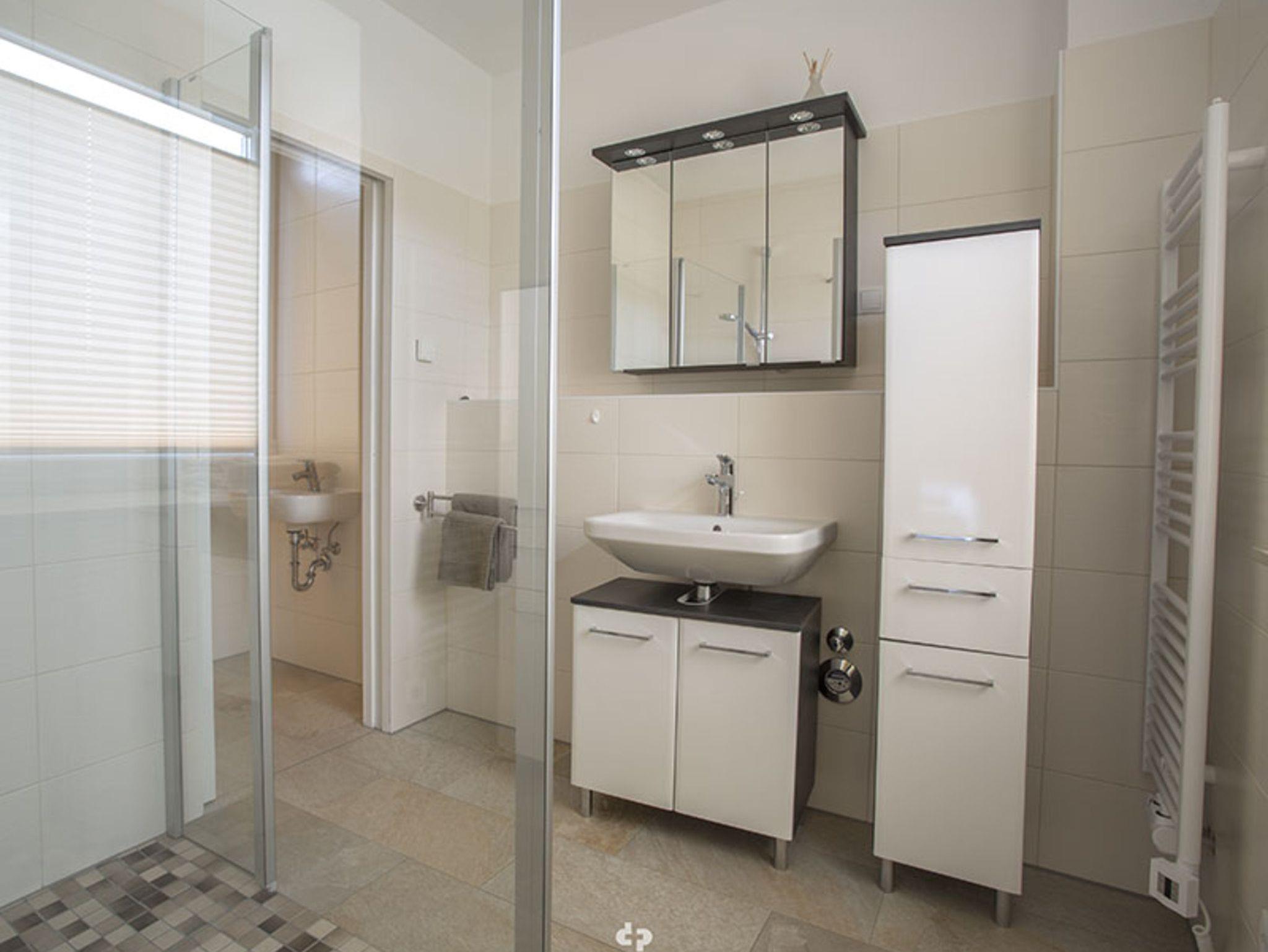 • Im Duschbad stehen Ihnen eine geräumige Dusche, ein Waschplatz sowie ein Handtuchheizkörper zur Verfügung.