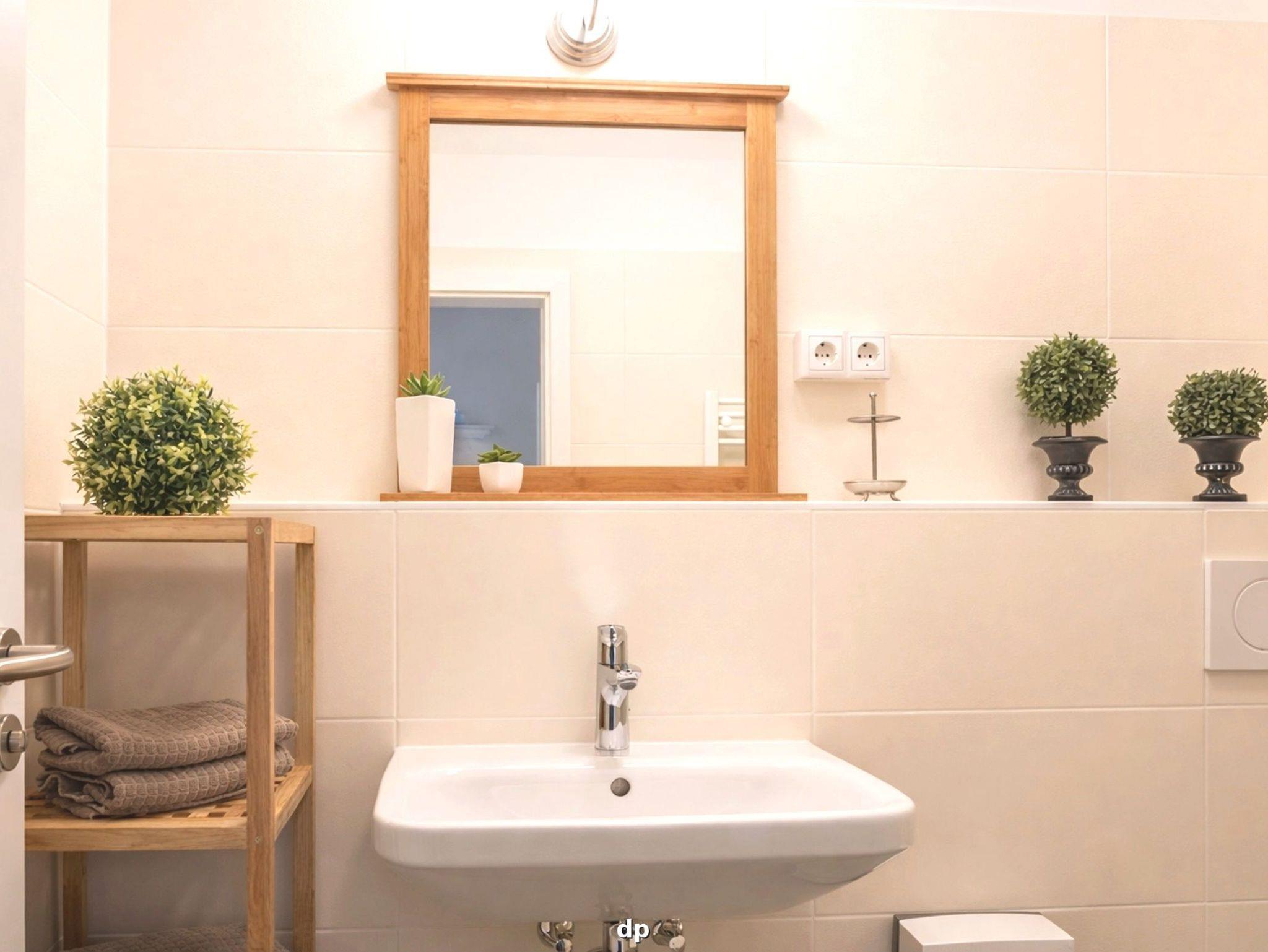 • Das geflieste Bad verfügt über eine hochwertige Ausstattung mit ebenerdiger Dusche mit Glastür, Waschtisch und WC.