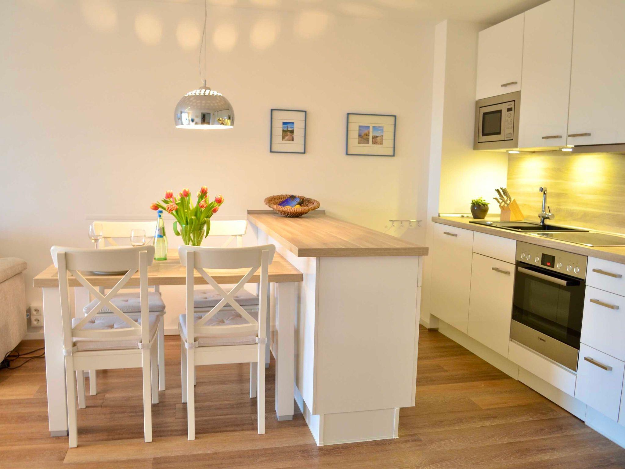 • Die voll ausgestattete Küche bietet Ihnen eine Geschirrspülmaschine, einen Herd mit Cerankochfeld, eine geräumige Kühl-Gefrierkombination, eine Mikrowelle, eine Nespresso-Kapselmaschine sowie viel Stauraum.
