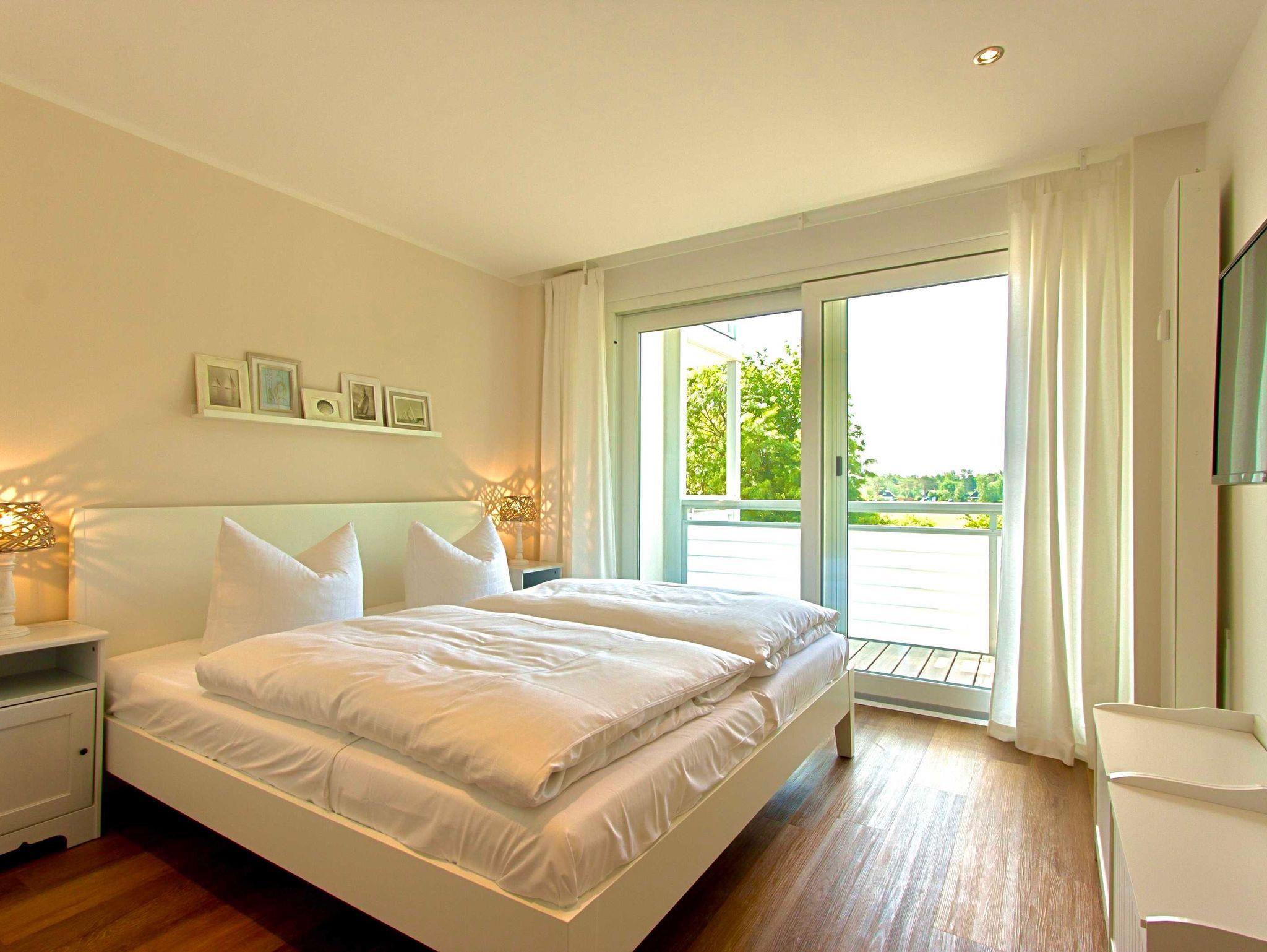• Sowohl vom Schlafzimmer als auch vom Wohnbereich aus erreichen Sie den ca. 12 m² großen, sonnigen Südbalkon mit Balkonmöbeln und einem weitläufigen Wiesen- und Deichblick.