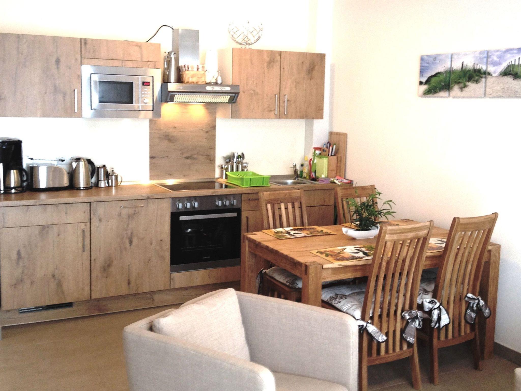 • Es erwartet Sie ein Sonnenlicht durchfluteter Wohnraum mit gemütlicher Sitzecke (als Schlafsofa nutzbar) mit LED-TV, einen modernen Kaminofen (für romantisches Flair in der kalten Jahreszeit), einem einladenden Essbereich mit integrierter und hochwertiger Einbauküche, (ausgestattet mit Cerankochfeld, Backofen, Mikrowelle, Geschirrspüler, Kühlschrank mit Gefrierfach, Kaffeemaschine, Wasserkocher, Toaster). Das Schlafzimmer ist mit einem bequemen Doppelbett (180 x 200), nebst 3-türigen Kleiderschrank und LED-TV ausgestattet.