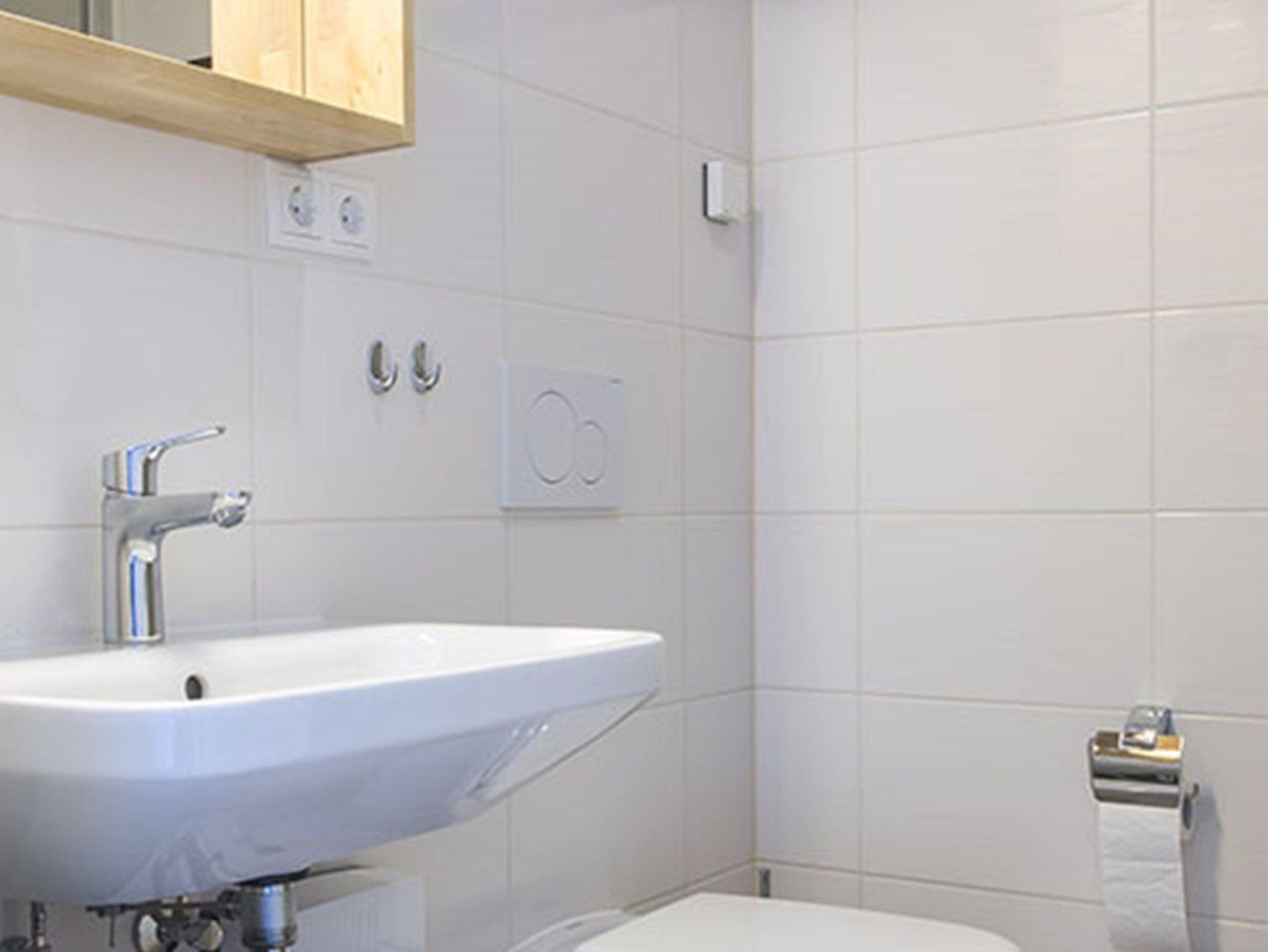• Das Bad verfügt über eine großzügige Dusche, einen Waschplatz sowie einen Handtuchheizkörper.