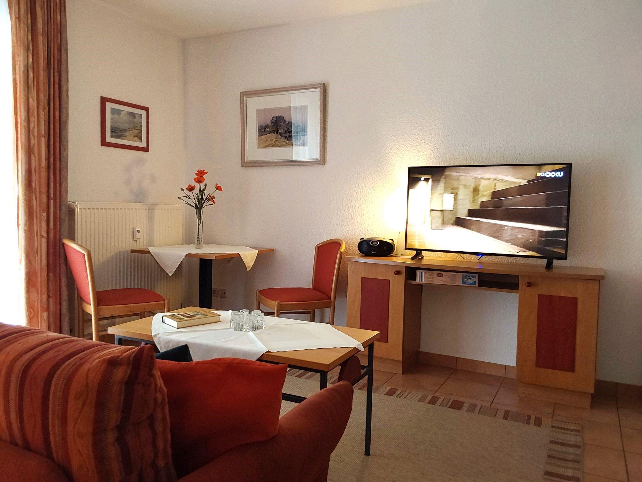 Die modern eingerichteten 1-Raum-Appartements dieser Kategorie sind für 2 Personen geeignet und ca. 30 qm groß. Sie verfügen über einen Wohn-/Schlafraum mit Doppelbett für 2 Personen. Alle unsere Wohnungen sind Nichtraucher-Wohnungen. Bei einigen Appartements können Sie Ihr Haustier mitbringen (s. Zimmerdaten). Ausstattung: Sat-TV, Radio, Küchenzeile, Dusche/WC, möblierte Terrasse oder Balkon. Bettwäsche und Handtücher als Erstausstattung.