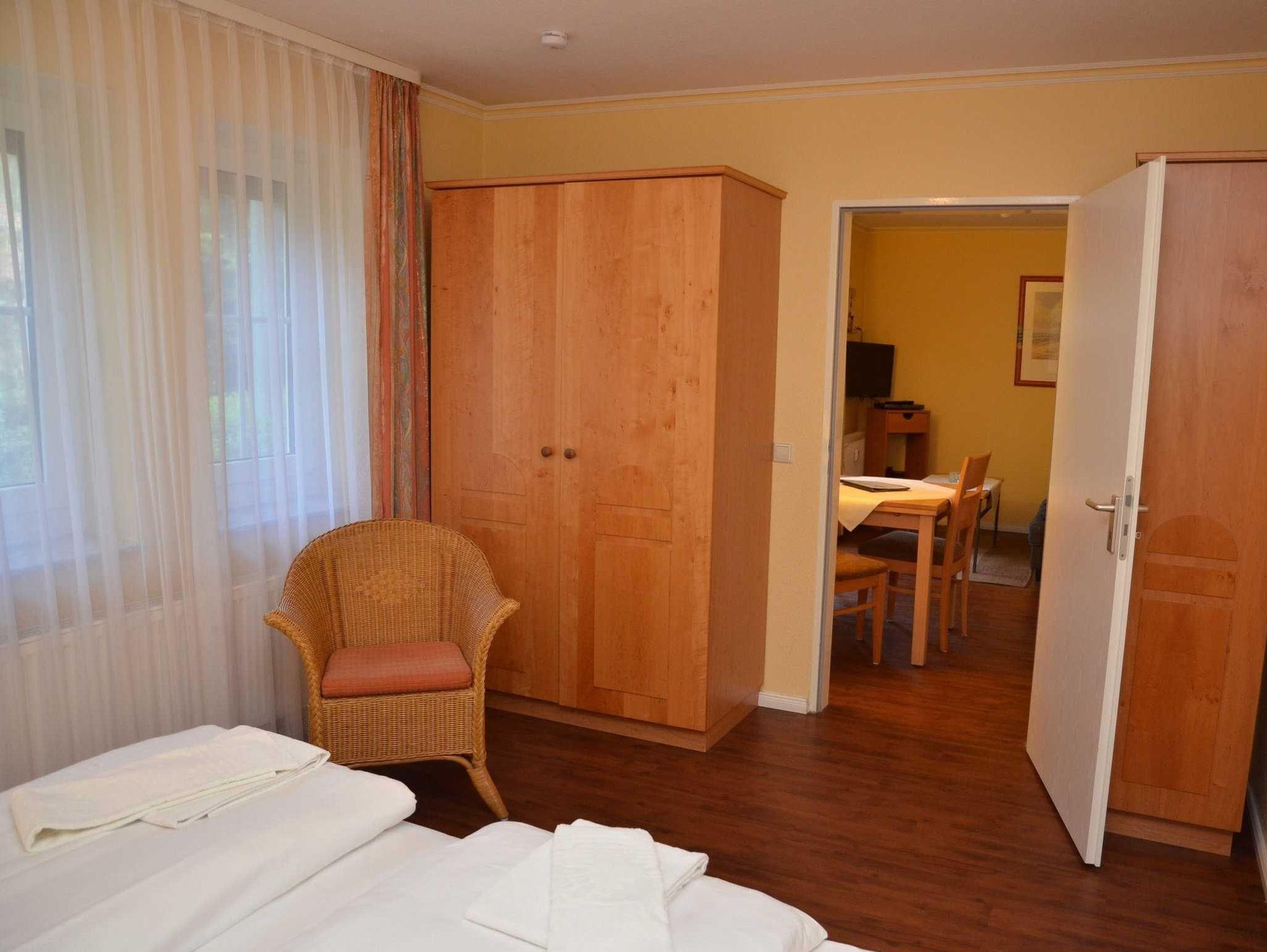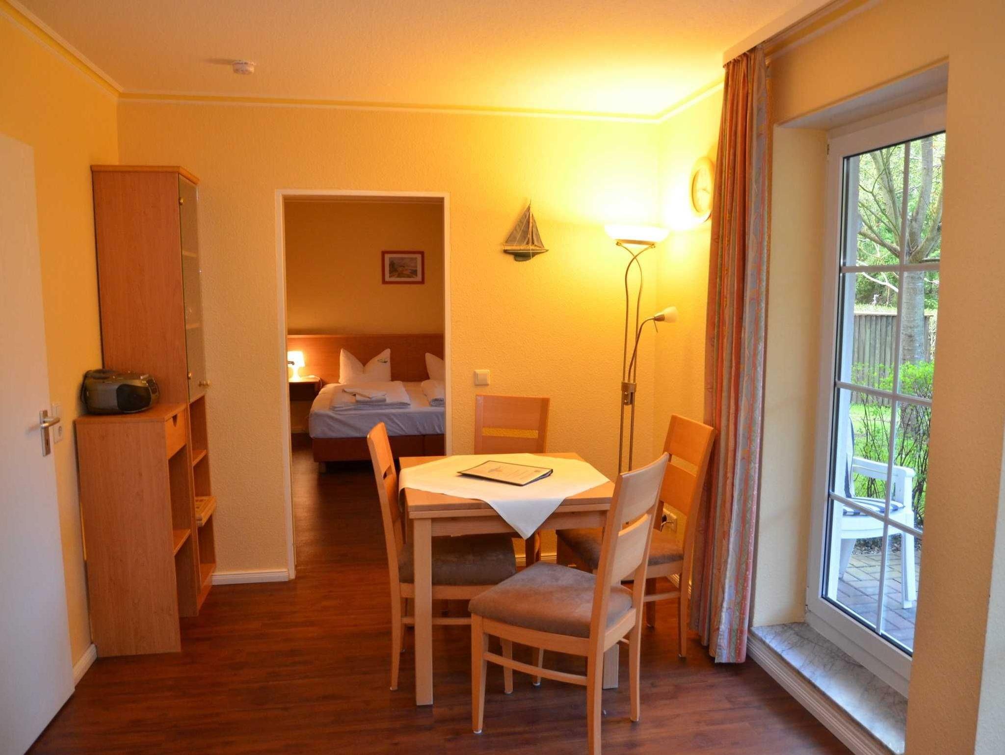 Die modern eingerichteten 2-Raum-Appartements dieser Kategorie sind für 4 Personen geeignet und ca. 46 qm groß. Sie verfügen über einen Wohn-/Schlafraum mit Schlafcouch für 2 Personen und ein separates Schlafzimmer (Doppelbett oder 2 Einzelbetten). Alle unsere Wohnungen sind Nichtraucher-Wohnungen. Bei einigen können Sie Ihr Haustier mitbringen (s. Zimmerdaten). Ausstattung: Sat-TV, Radio und teilweise Telefon, Küchenzeile, Dusche/WC, möblierte Terrasse oder Balkon. Bettwäsche und Handtücher als Erstausstattung.