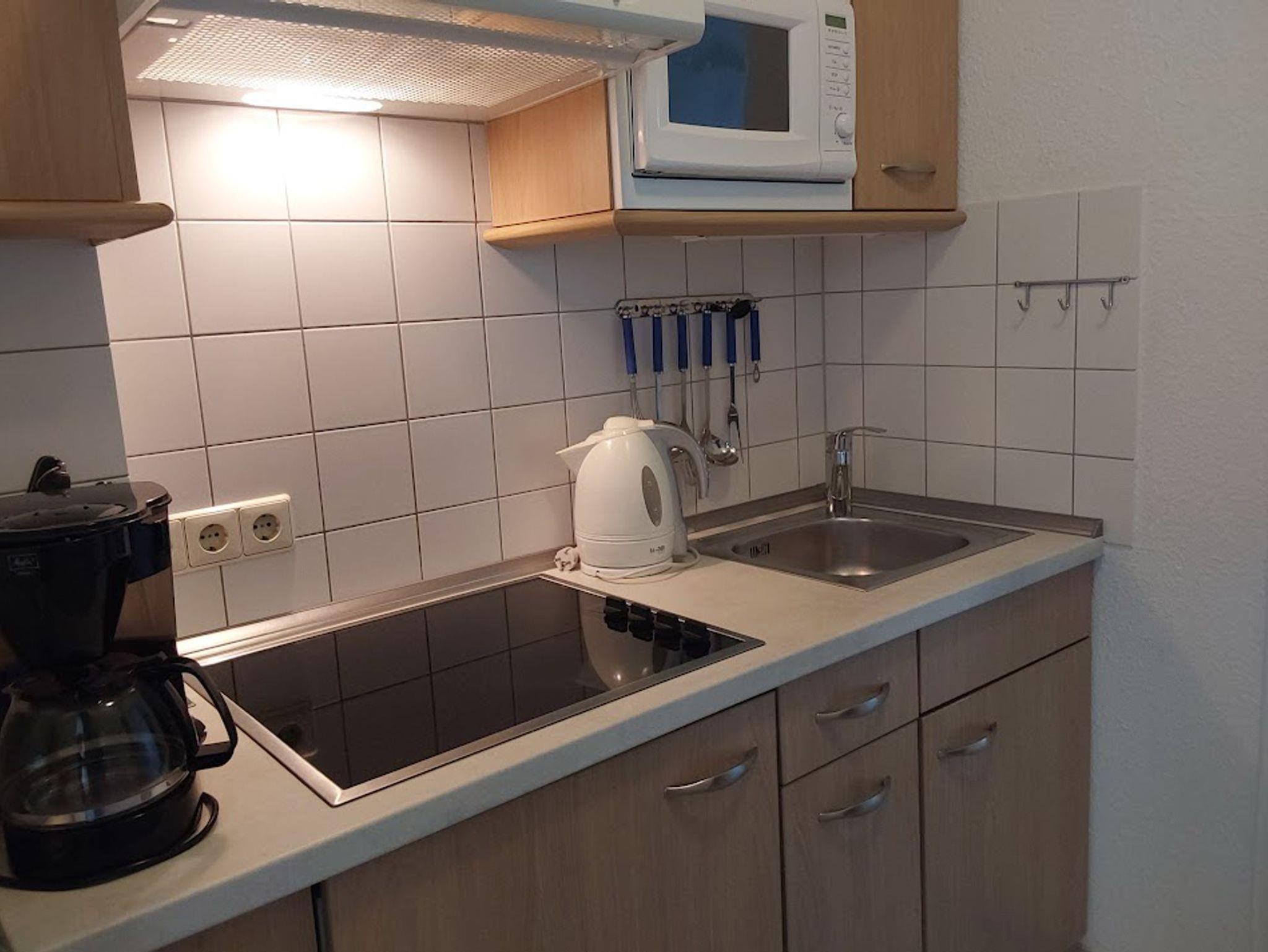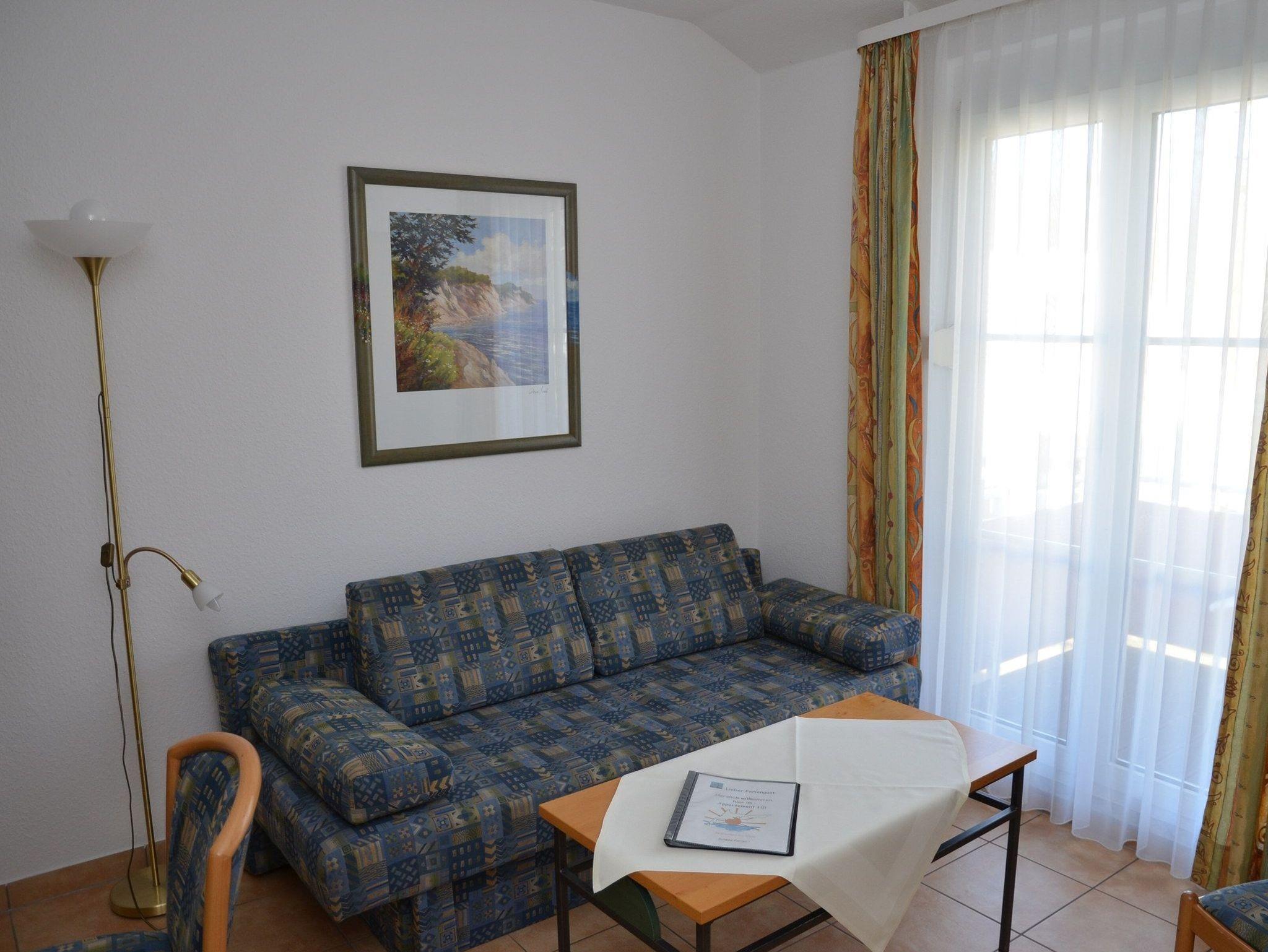 Die modern eingerichteten 2-Raum-Appartements dieser Kategorie sind für maximal 3 Personen geeignet und ca. 32 qm groß. Sie verfügen über einen Wohn-/Schlafraum mit Schlafcouch für 1 Person und ein separates Schlafzimmer (Doppelbett oder 2 Einzelbetten). Alle unsere Wohnungen sind Nichtraucher-Wohnungen. Bei einigen Appartements können Sie Ihr Haustier mitbringen (s. Zimmerdaten). Ausstattung: Sat-TV, Radio und teilweise Telefon, Küchenzeile, Dusche/WC, möblierte Terrasse oder Balkon. Bettwäsche und Handtücher als Erstausstattung.