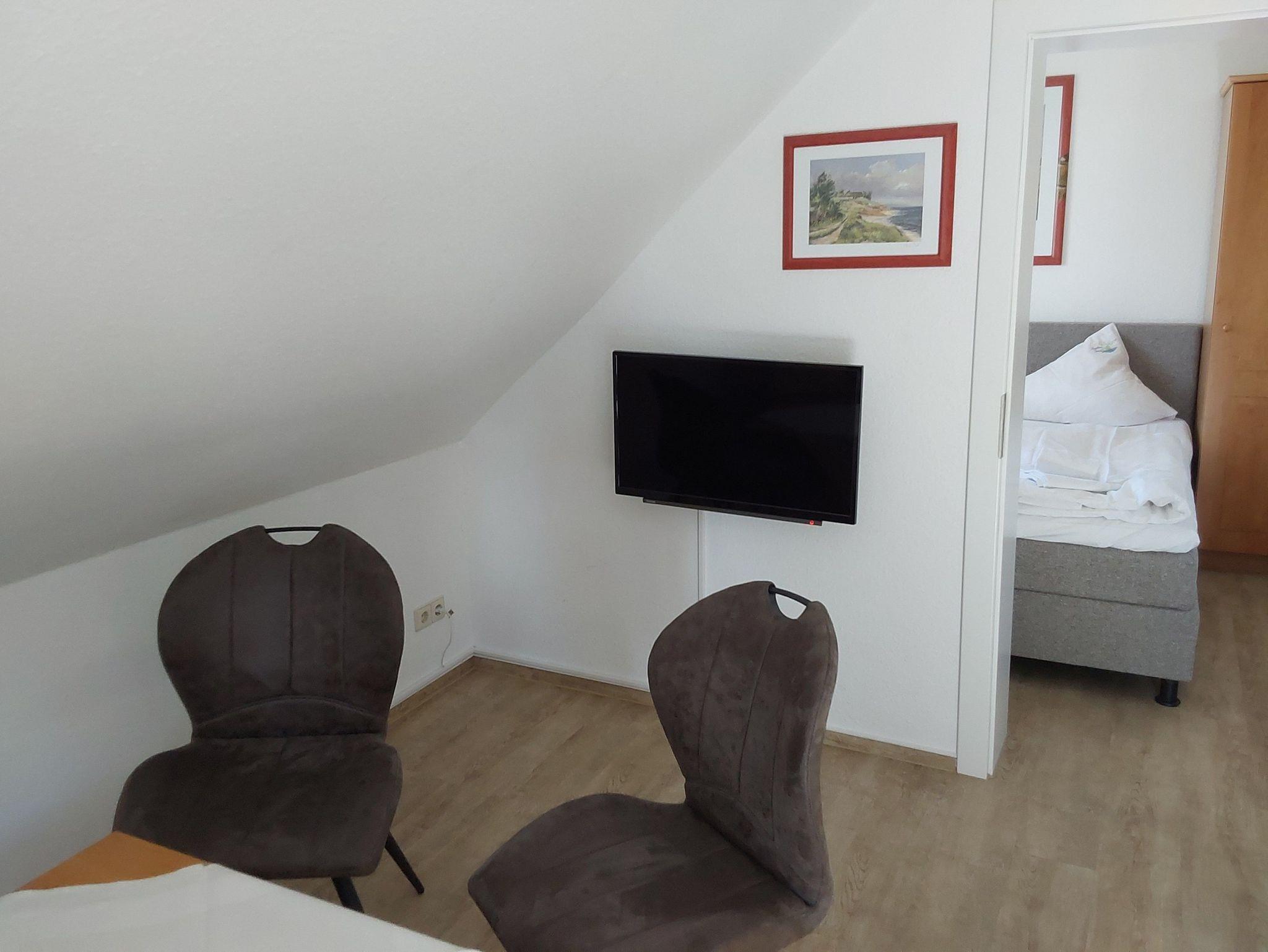 Die FEWO ist für zwei Personen üppig groß und insgesamt gut ausgestattet. Die fehlende Spülmaschine fällt bei zwei Personen kaum ins Gewicht, das fehlende W-Lan ist nicht mehr zeitgemäß. Auch die weißen Plastikstühle auf den Balkonen sollten einmal erneuert werden.