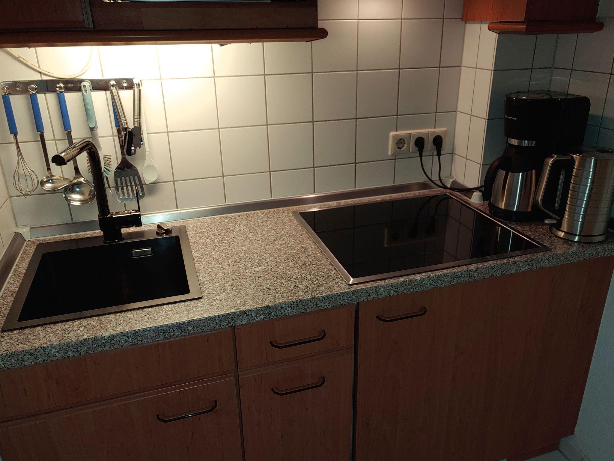Die FEWO ist für zwei Personen üppig groß und insgesamt gut ausgestattet. Die fehlende Spülmaschine fällt bei zwei Personen kaum ins Gewicht, das fehlende W-Lan ist nicht mehr zeitgemäß. Auch die weißen Plastikstühle auf den Balkonen sollten einmal erneuert werden.