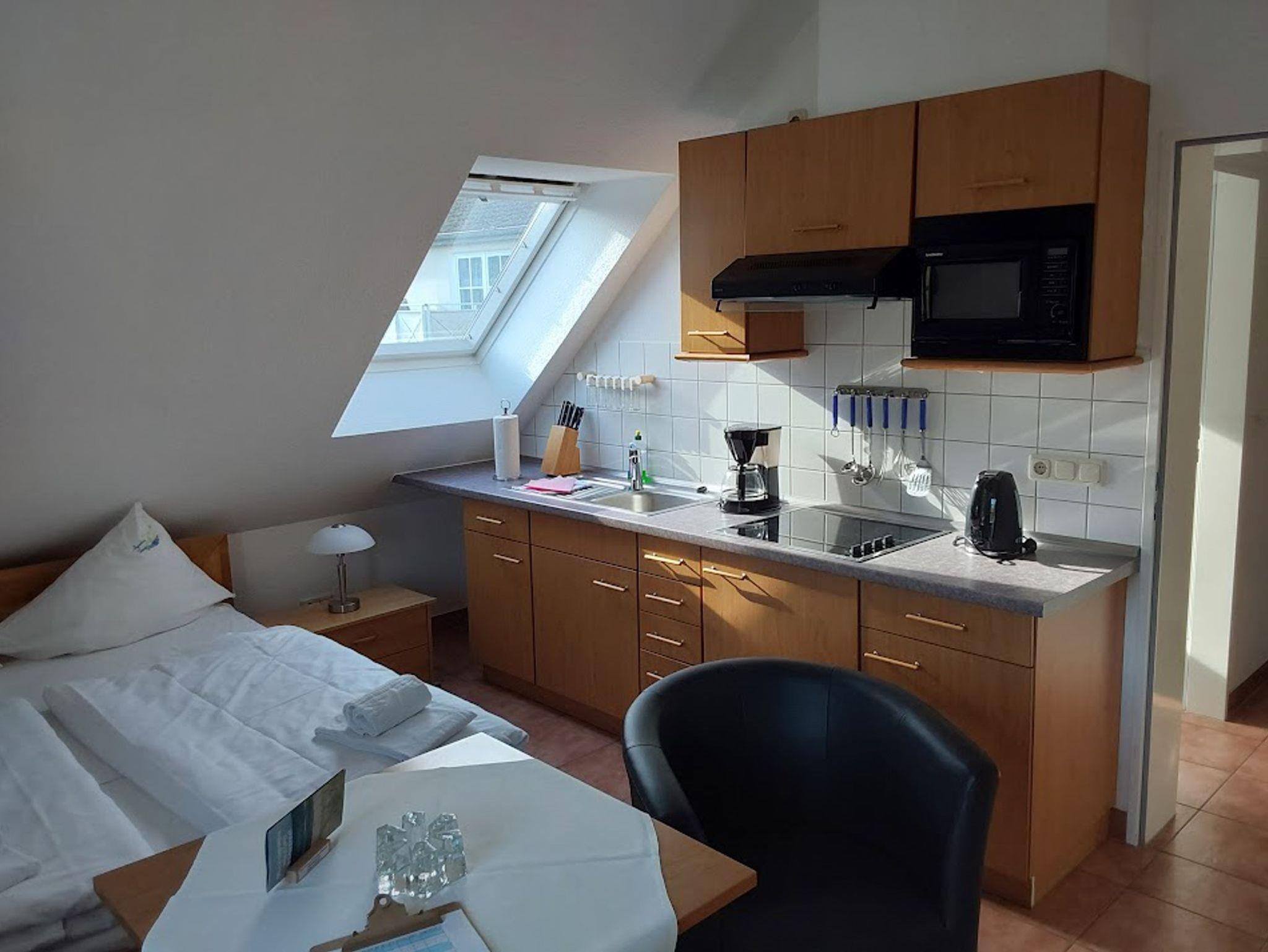 Die modern eingerichteten 1-Raum-Appartements dieser Kategorie sind für maximal 2 Personen geeignet und ca. 21 qm groß. Sie verfügen über einen Wohn-/Schlafraum für 2 Personen. Alle unsere Wohnungen sind Nichtraucher-Wohnungen. Bei einigen Appartements können Sie Ihr Haustier mitbringen (s. Zimmerdaten). Ausstattung: Sat-TV, Radio, Küchenzeile, Dusche/WC, möblierte Terrasse oder Balkon. Bettwäsche und Handtücher als Erstausstattung.