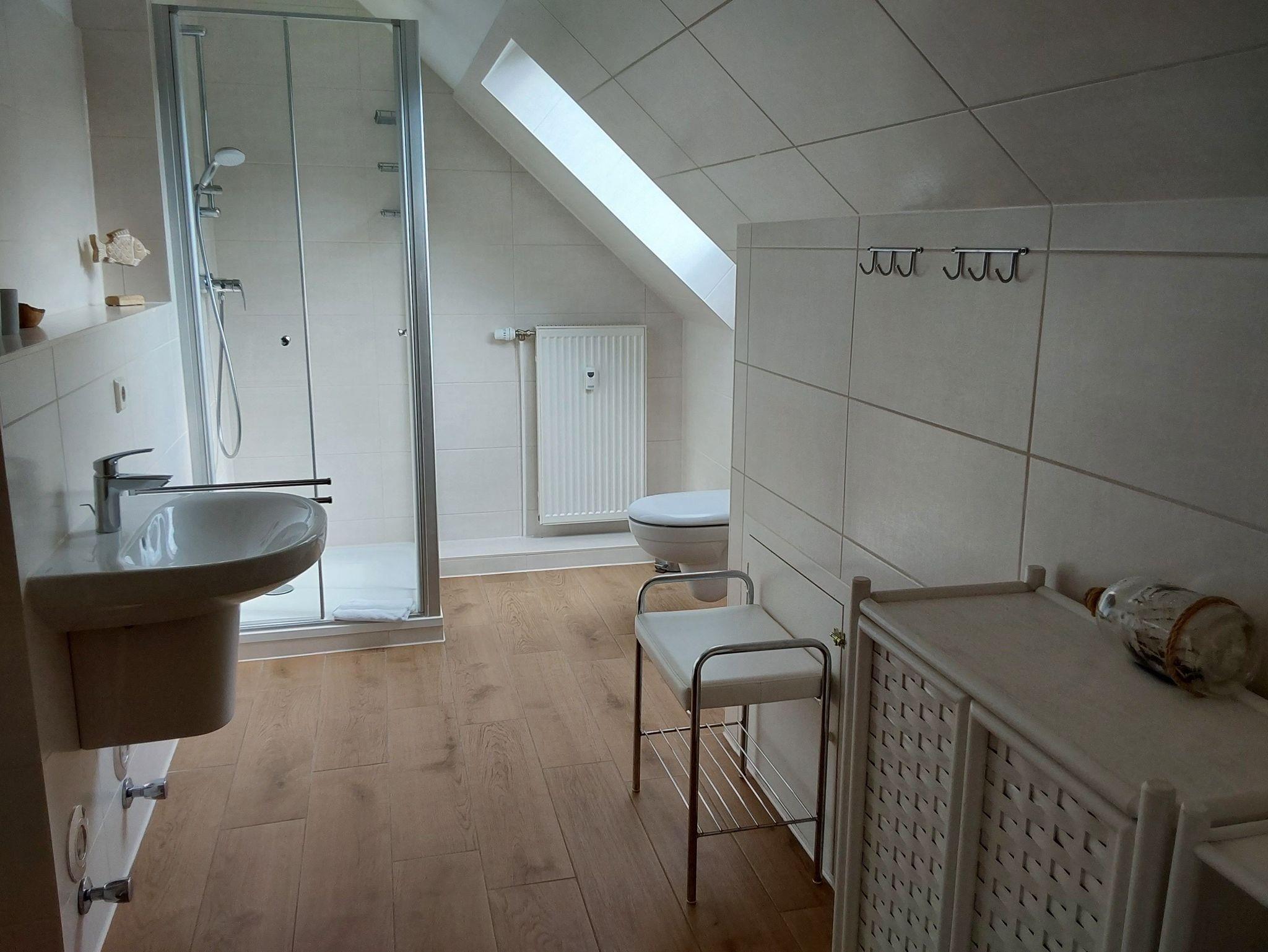 Die FEWO ist für zwei Personen üppig groß und insgesamt gut ausgestattet. Die fehlende Spülmaschine fällt bei zwei Personen kaum ins Gewicht, das fehlende W-Lan ist nicht mehr zeitgemäß. Auch die weißen Plastikstühle auf den Balkonen sollten einmal erneuert werden.