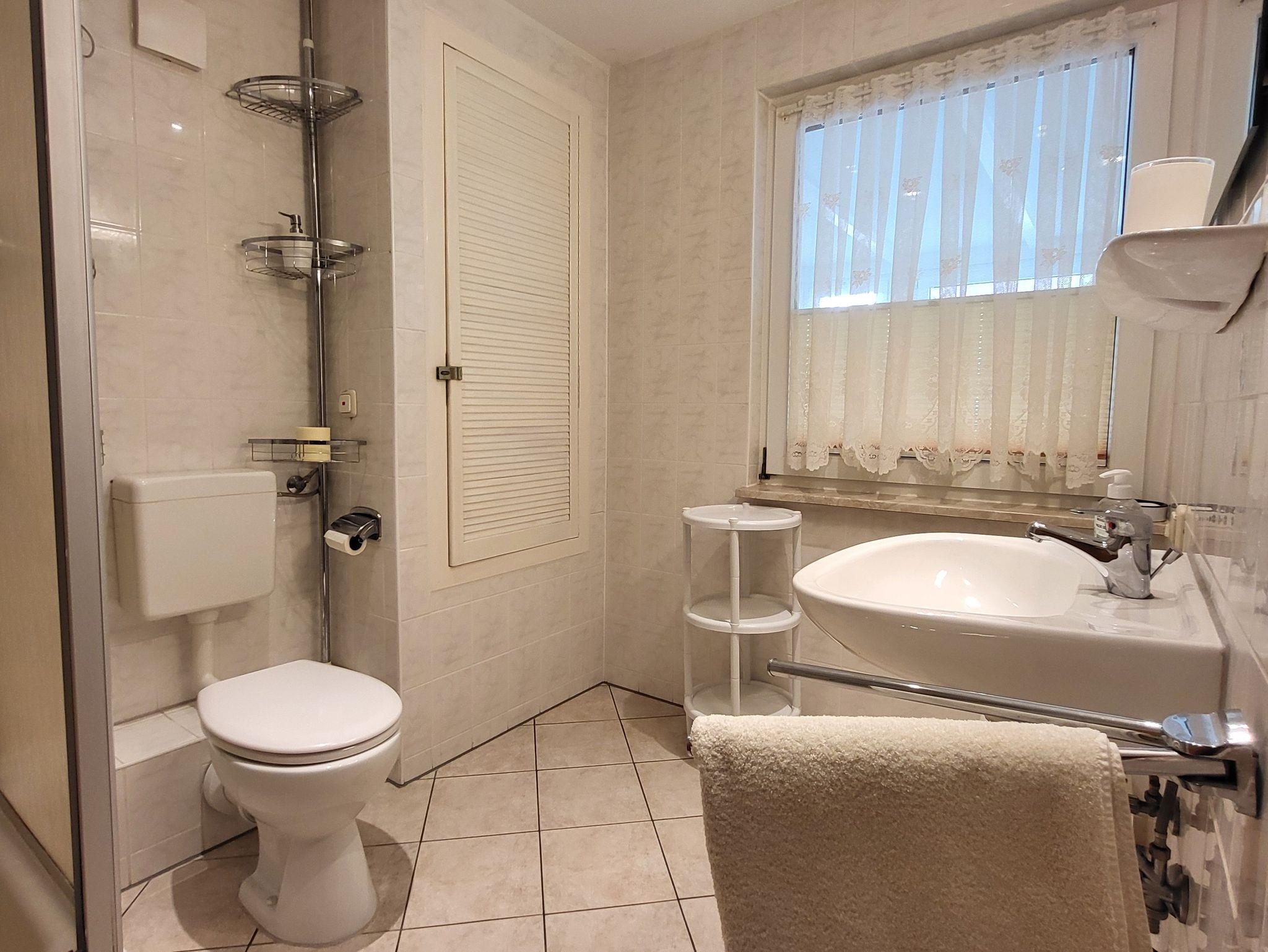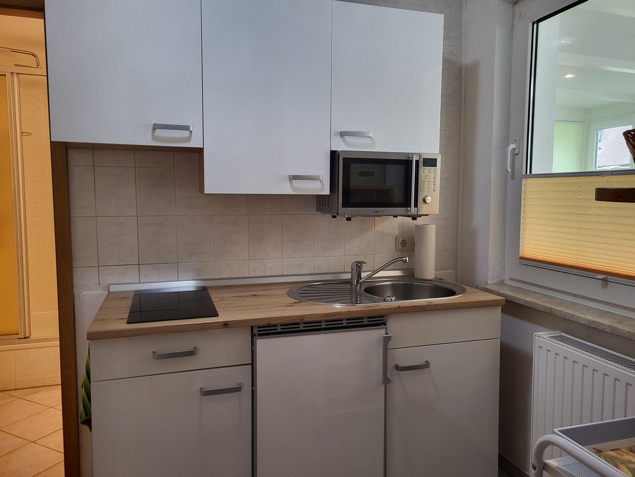 Die kleine Küche ist mit allen nötigen Küchenutensilien ausgestattet. Im Badezimmer befindet sich eine Dusche/WC.Die Wohnung wird mit Bettwäsche übergeben, Handtücher sind von den Gästen mitzubringen.